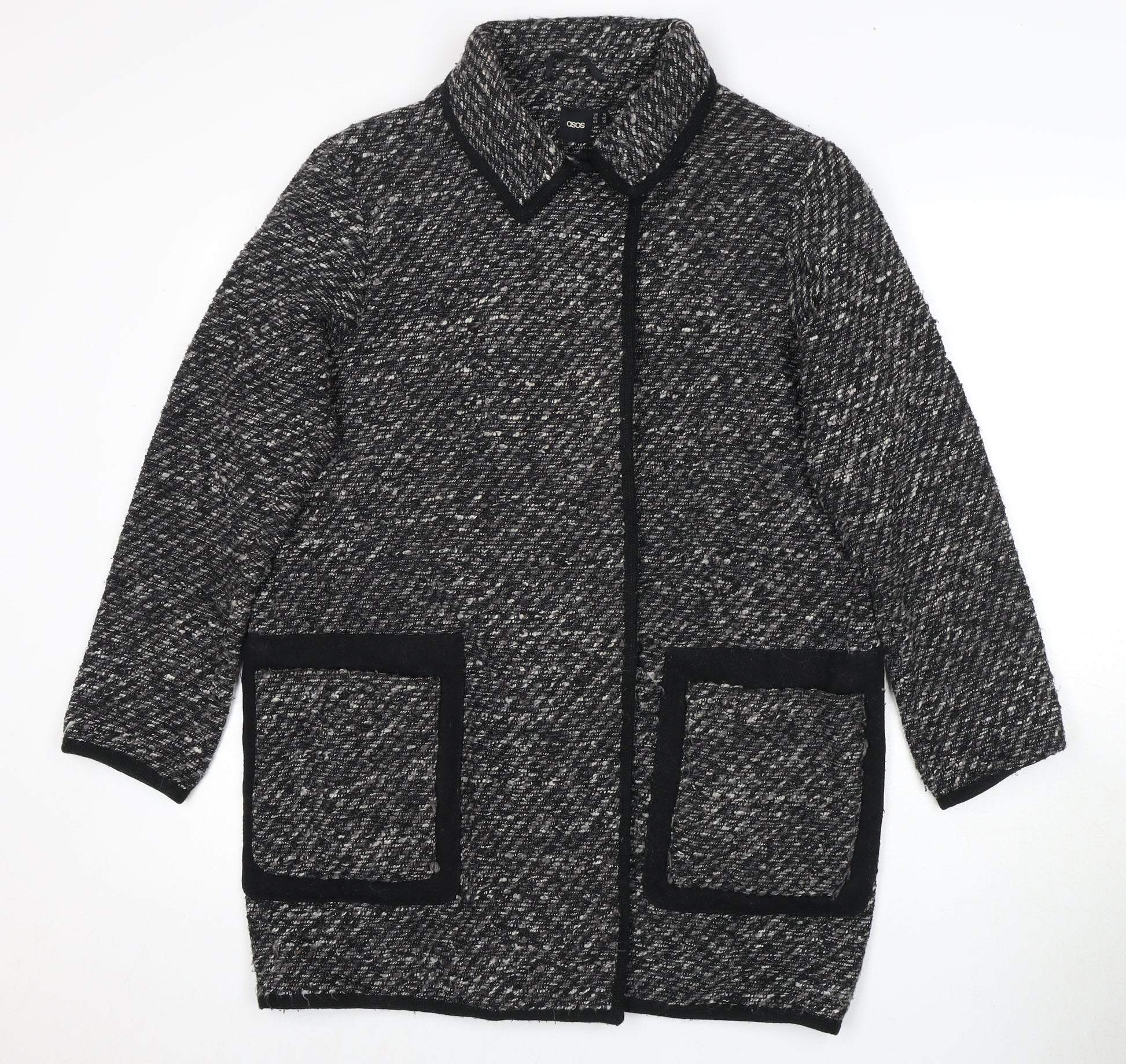Step out in style with this Asos women's mid-length coat, perfect for adding a touch of elegance to your autumn and winter wardrobe. Crafted from a luxurious wool and acrylic blend, this coat promises warmth and comfort. The classic black hue makes it a versatile piece that can easily pair with various outfits. Featuring a collared neckline, full-length sleeves, and button accents, this coat offers a refined look suitable for casual outings. The tweed fabric adds a sophisticated texture, while the practical pockets provide convenience for everyday use. Designed for regular fit and available in size 14, it flatters a variety of body types. Despite showing minimal signs of wear, the coat remains in excellent condition with no visible damage. Ideal for casual occasions, this coat is an essential addition to any fashion-forward wardrobe. Enjoy the cooler seasons with this chic and stylish piece that complements any personal style.