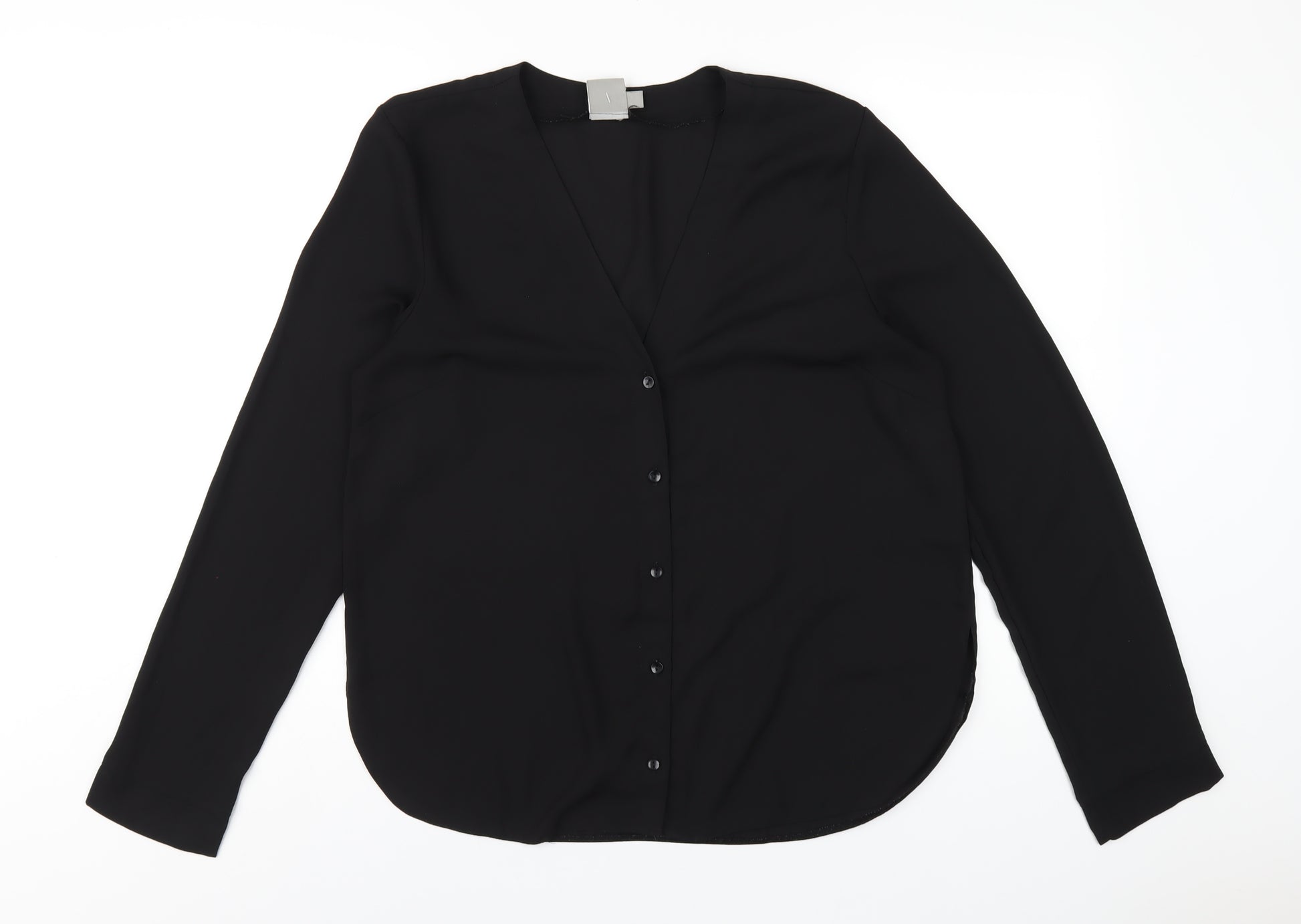 Womens Black Polyester Basic Button-Up Size 14 V-Neck