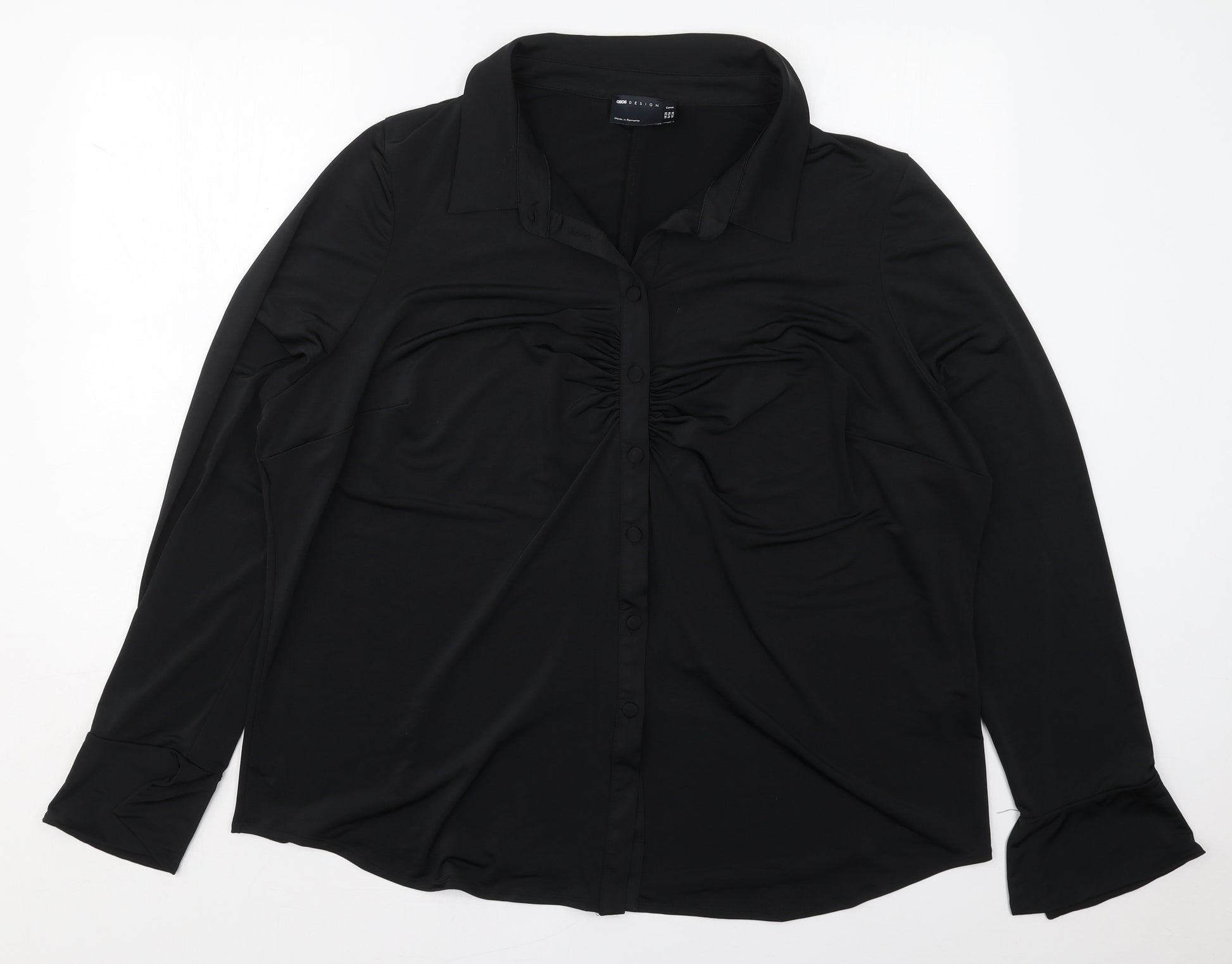 Womens Black Polyester Basic Button-Up Size 28 Collared