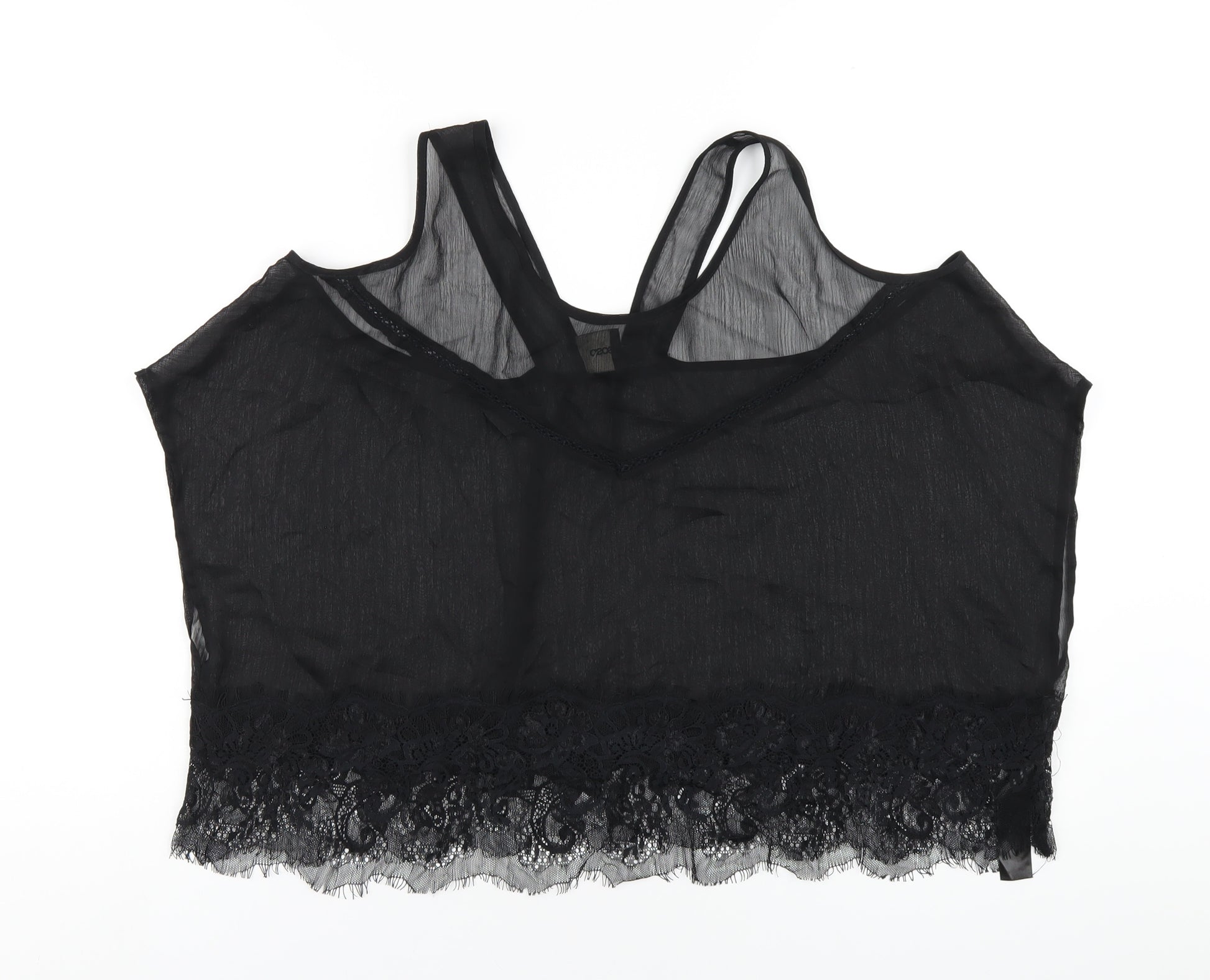 Womens Black Polyester Basic T-Shirt Size 12 Round Neck - Lace Trim