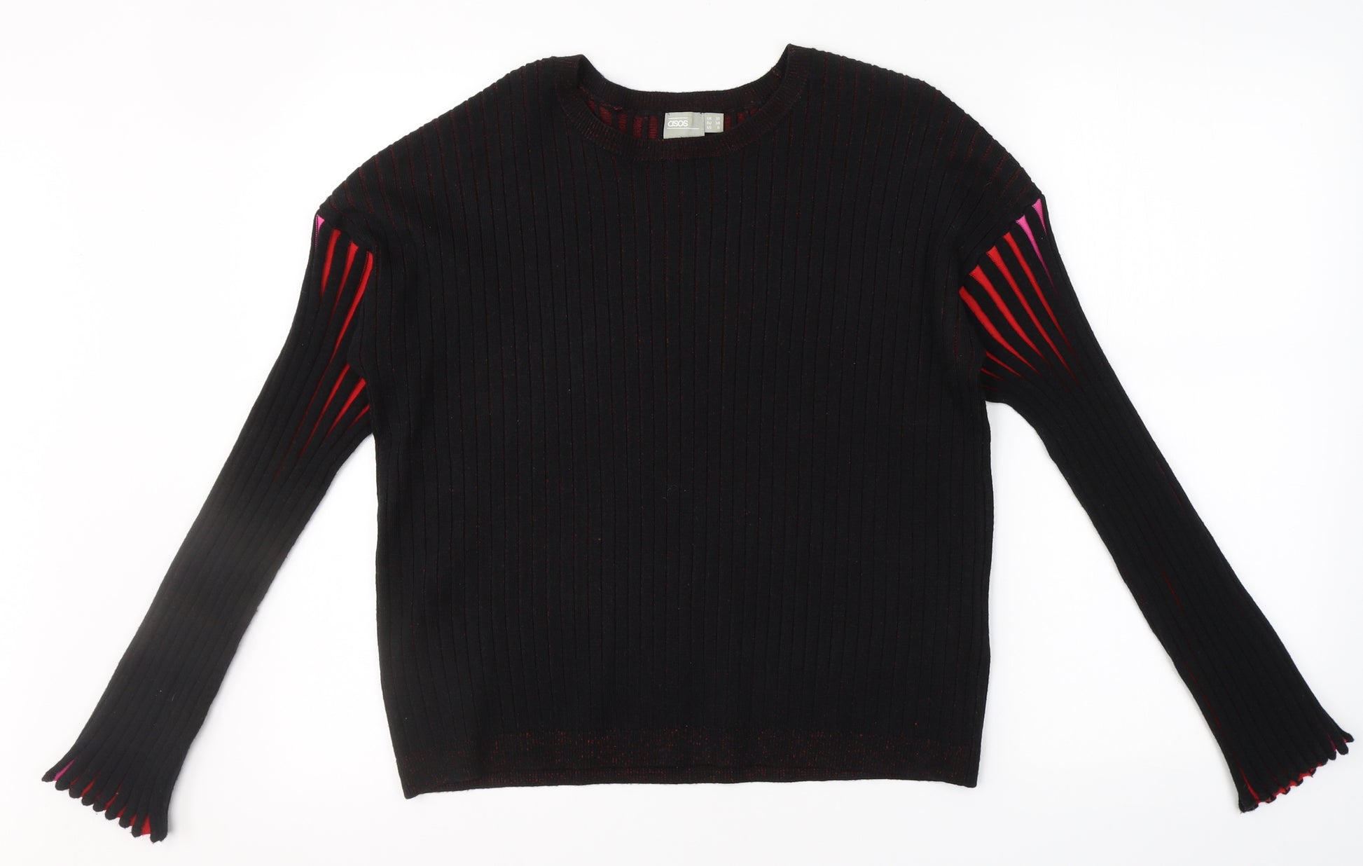 Womens Black Round Neck Striped Acrylic Pullover Jumper Size 10