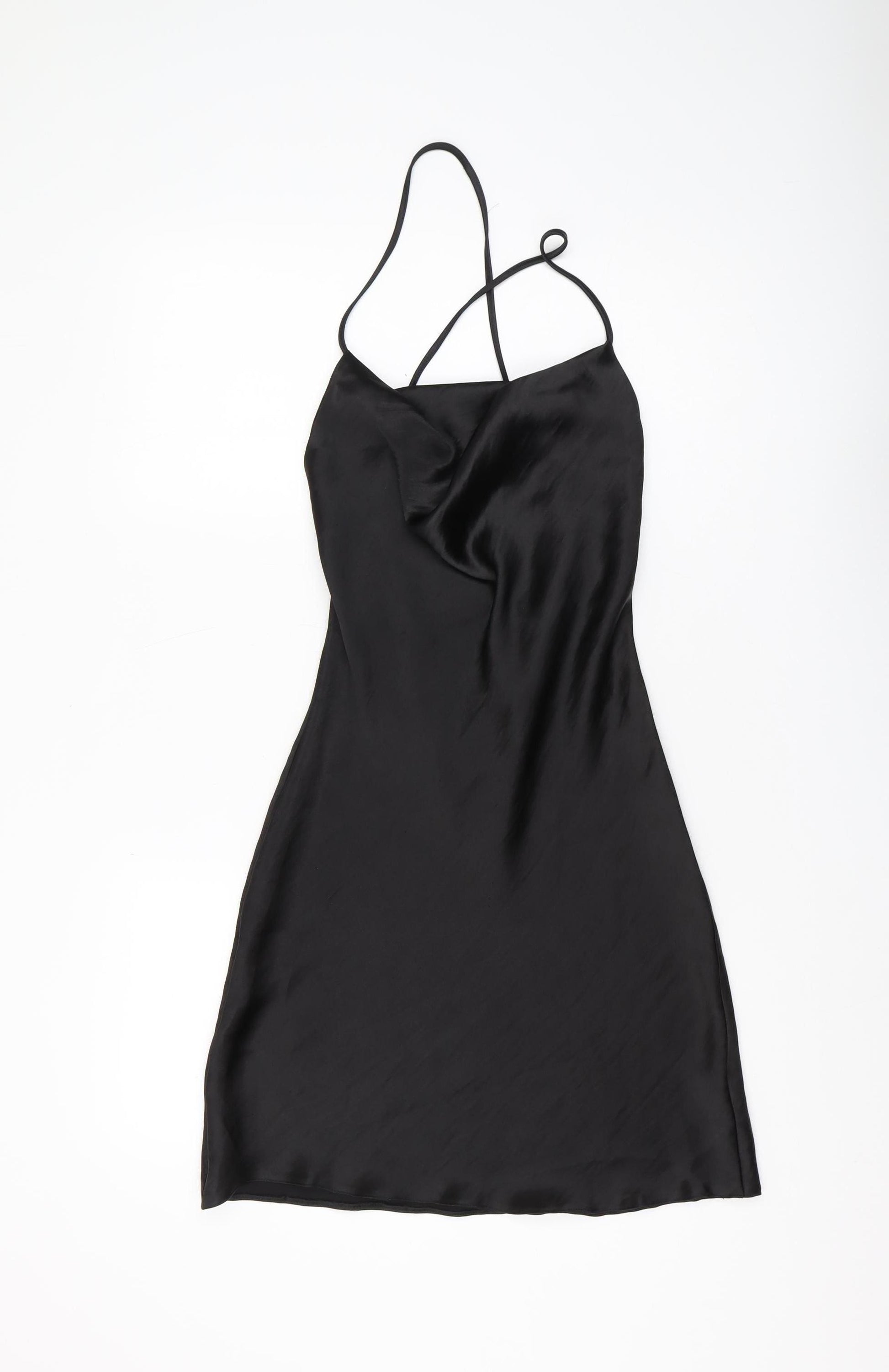 Elevate your evening wardrobe with this sleek Asos Women's Black Slip Dress, expertly designed for stylish nights and special occasions. This modern slip dress is crafted in a rich black polyester that gives it a smooth and silky appearance. Suitable for Autumn and Winter, its short dress length and sleeveless design make it a perfect choice for cocktail parties and gatherings. The lightweight woven fabric ensures comfort while enhancing your silhouette with its elegant drape. Featuring a strappy style, this dress comes with a versatile lace-up closure at the back, adding a touch of allure. The cowl neckline accentuates the neck and shoulders gracefully, making it a captivating choice for sophisticated evening wear. Seamlessly aligning with a 'No Pattern' design, it embraces modern minimalism that’s easy to accessorise. The dress, sized at UK 12, is a regular fit, ideal for women seeking a chic look without compromising on comfort. Enjoy the convenience of machine washable care, offering ease with every wear. Encapsulating timeless style with contemporary charm, this piece promises to be a staple in your collection. Make a bold, confident statement at your next event with this New With Tags Asos Slip Dress, featuring a polyester composition for an effortlessly luxe finish.