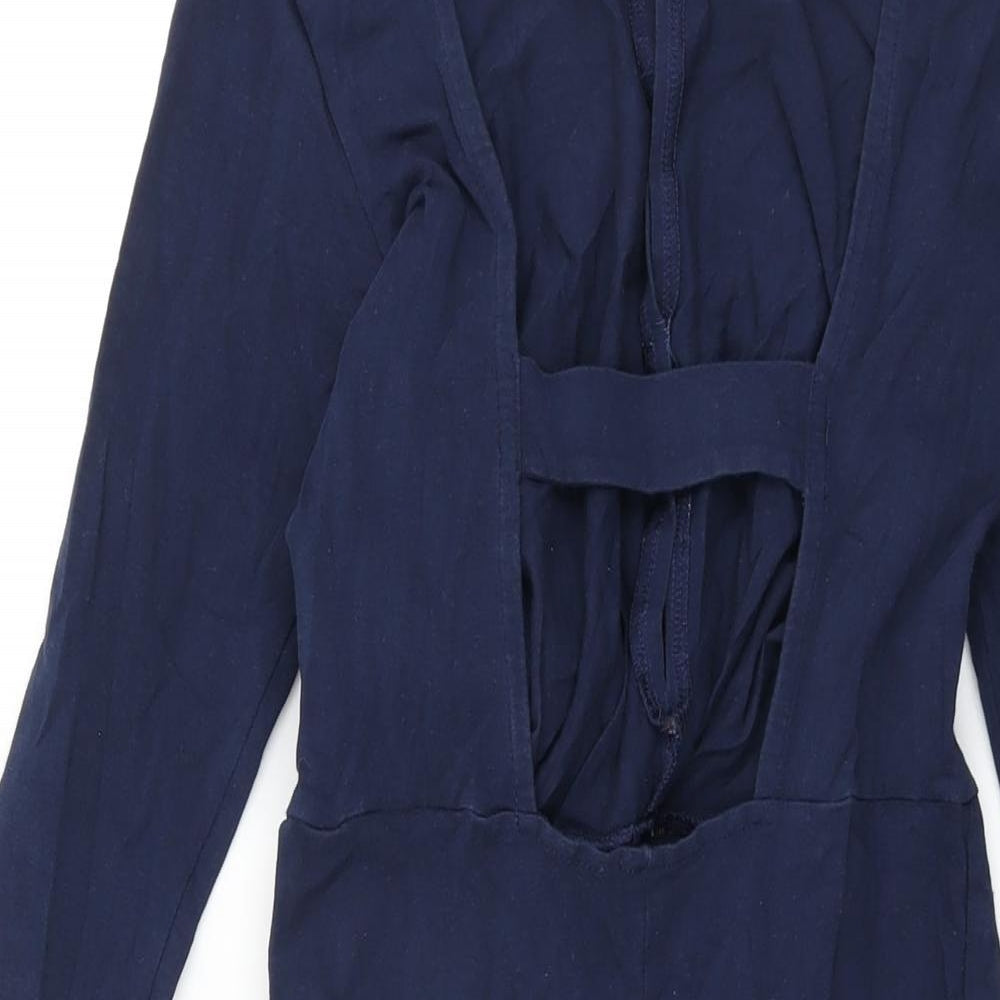 Womens Blue Cotton Bodycon Size 8 Round Neck Pullover