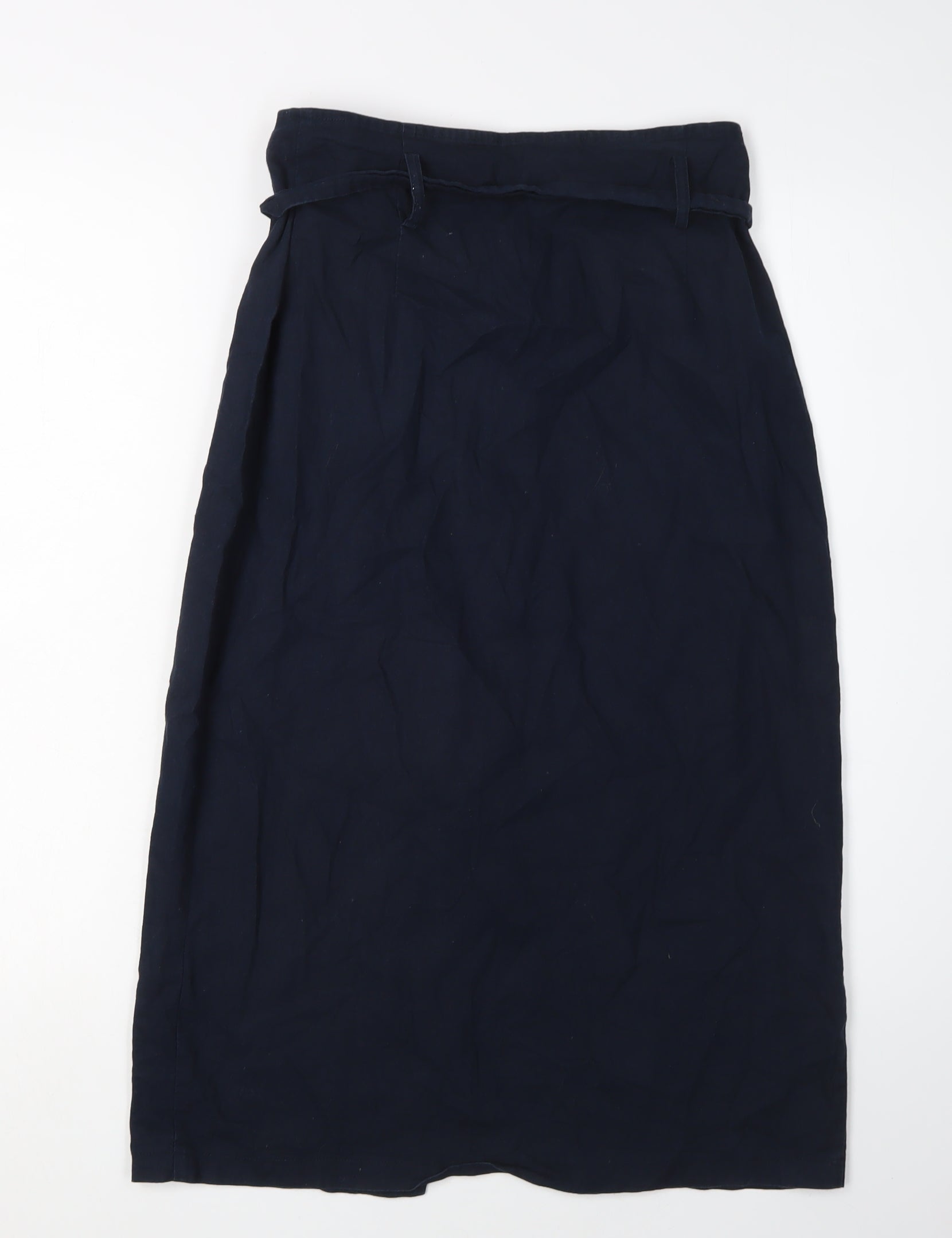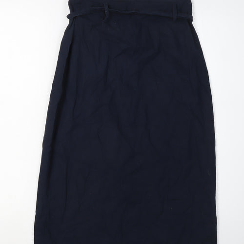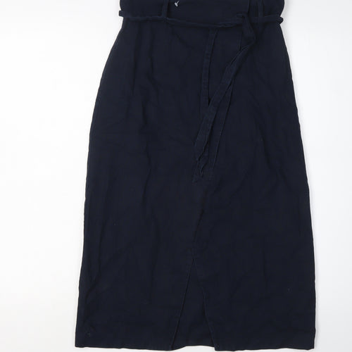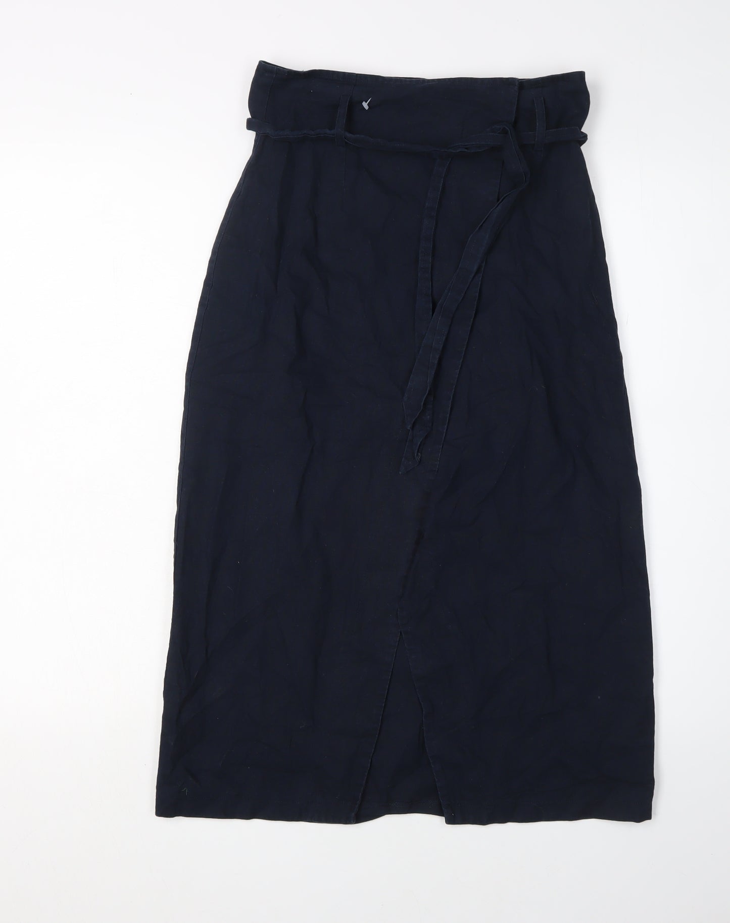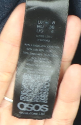 This elegant ASOS women's pencil skirt in a size 8 is a versatile addition to any wardrobe. The skirt is crafted from a premium blend of 90% cotton and 10% elastane, providing a comfortable fit with just the right amount of stretch. Its striking blue colour makes it a perfect choice for both casual and semi-formal occasions, adapting effortlessly to any setting.Designed with a high-rise waist and a stylish slit, this skirt accentuates your silhouette while providing ease of movement. The tie closure adds a touch of sophistication and allows you to adjust the fit to your preference, ensuring you look and feel your best.The skirt features a straightforward, no-pattern design, making it a timeless piece that can be mixed and matched with various tops and accessories. Suitable for all seasons, its versatile style and reliable machine-washable care make it an essential addition to your clothing collection.In excellent condition, this garment shows minimal signs of wear, displaying only a few wrinkles that can be easily managed. Whether paired with a light blouse for daytime outings or a chic top for evening events, this pencil skirt will undoubtedly enhance your fashion game.