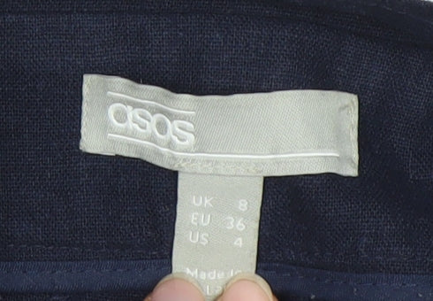 Elevate your wardrobe with these elegant blue linen blend trousers from Asos. Designed for women seeking both comfort and style, these trousers feature a sleek, minimalist look that works perfectly for a variety of occasions. Crafted from a blend of 82% viscose and 18% linen, these trousers offer a breathable fit ideal for any season. With a size 8 fit and simple lines, they provide a flattering silhouette great for both business and casual wear. These trousers are in excellent condition, showing no visible wear, making them a perfect addition to your collection. Their no-pattern design allows for versatile styling, whether you pair them with a crisp shirt for the office or a relaxed top for a weekend outing. Ideal for those who appreciate quality and subtle design, these machine-washable trousers are a must-have for any trendy wardrobe. Don't miss out on these timeless trousers that seamlessly blend practicality with style.