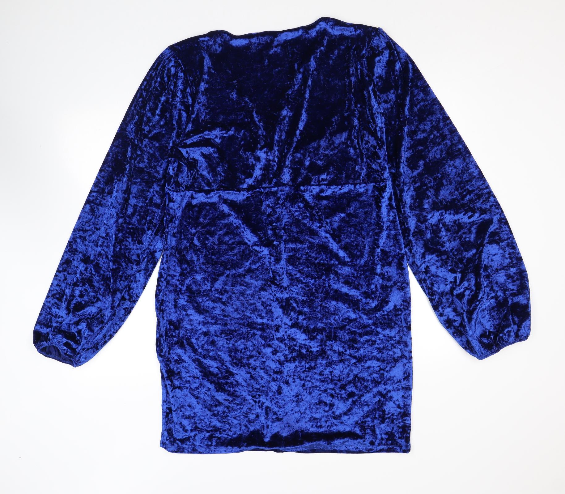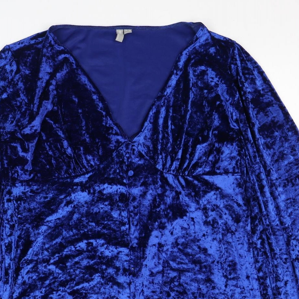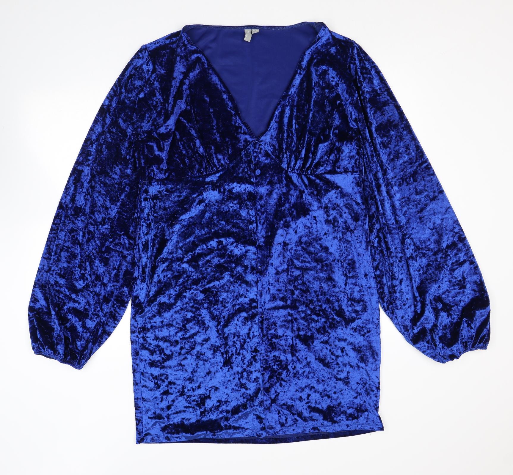 Womens Blue Polyester Mini Size 18 V-Neck Button