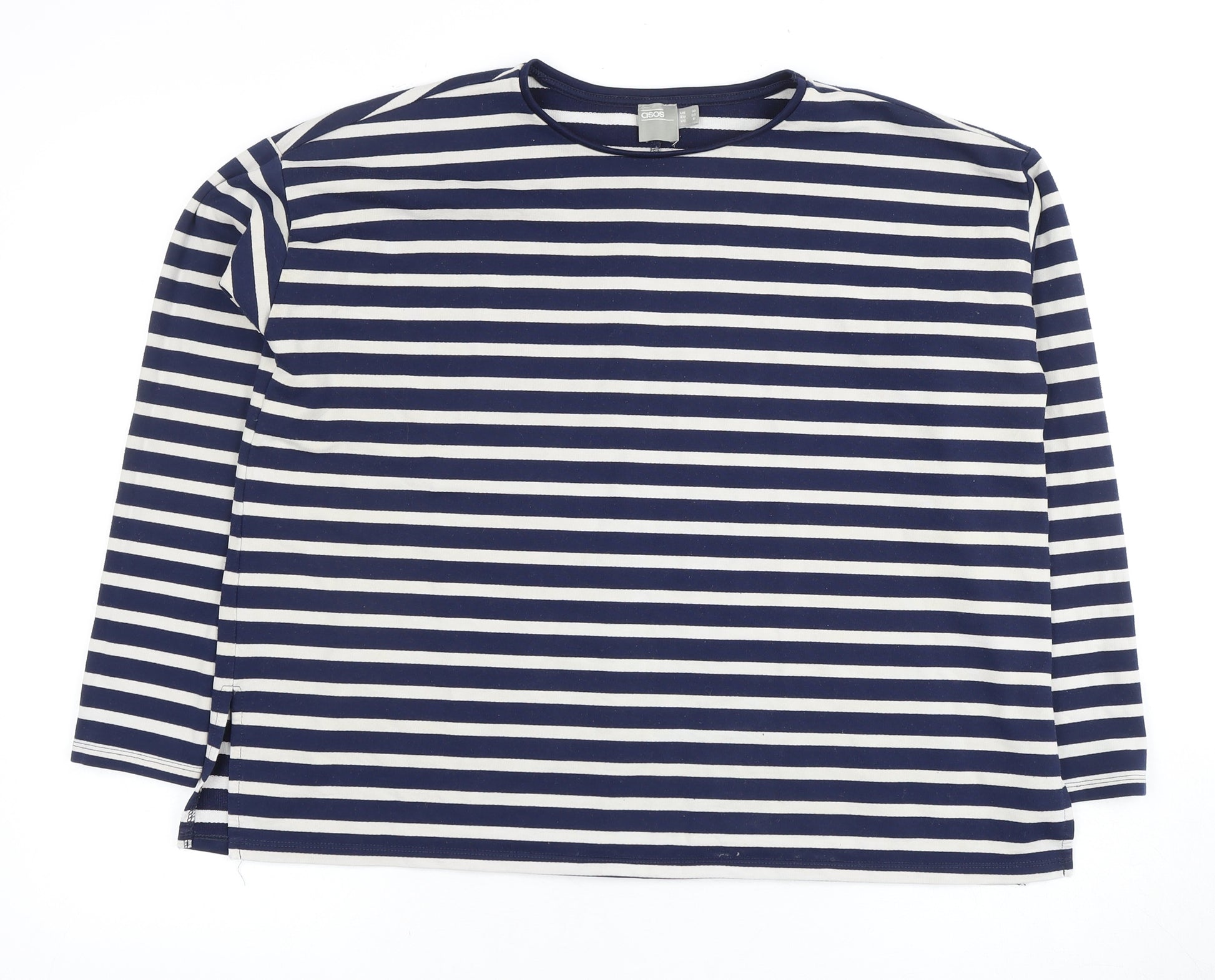 Enhance your wardrobe with this classic ASOS Women's Blue Striped T-Shirt, available in UK size 10. Perfect for casual outings, this t-shirt showcases a timeless striped pattern in shades of blue, making it a versatile addition to any outfit. Crafted from 100% cotton, it offers a soft and comfortable feel against the skin. The crew neckline and long sleeves provide a relaxed fit, making it an ideal choice for spring, summer, or autumn wear.The regular fit of this t-shirt ensures ease of movement, while the pullover closure makes it easy to wear. Its machine washable fabric allows for easy care and maintenance, making it a practical and stylish option for everyday wear. Despite being pre-loved, it remains in excellent condition, showing only minimal signs of wear. Pair it with jeans or a skirt for a laid-back, chic look.Whether you're heading to the park or meeting friends for coffee, this ASOS striped t-shirt will keep you looking effortlessly stylish. Don't miss out on adding this essential piece to your collection—purchase now to enjoy its simple elegance.