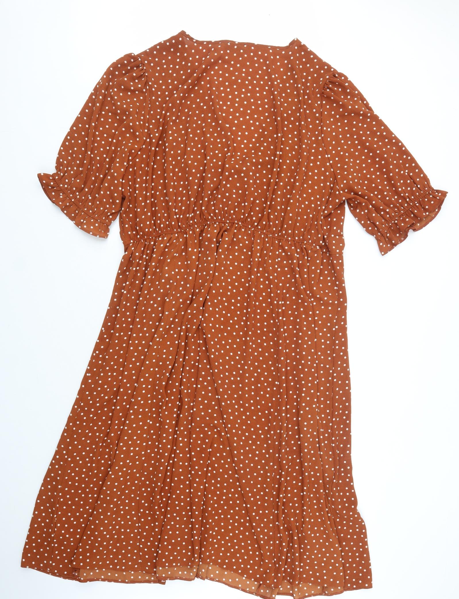 Womens Brown Polka Dot Polyester Maxi Size 26 V-Neck Tie