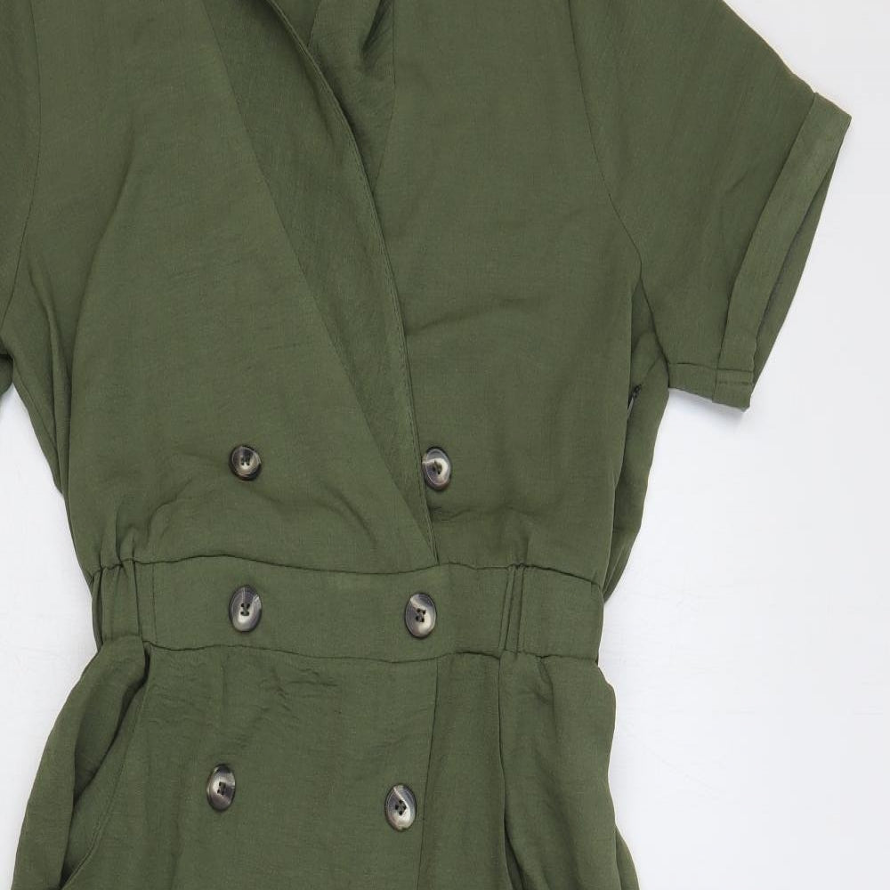 Womens Green Polyester Shirt Dress Size 10 Collared Button - Elastic Waist