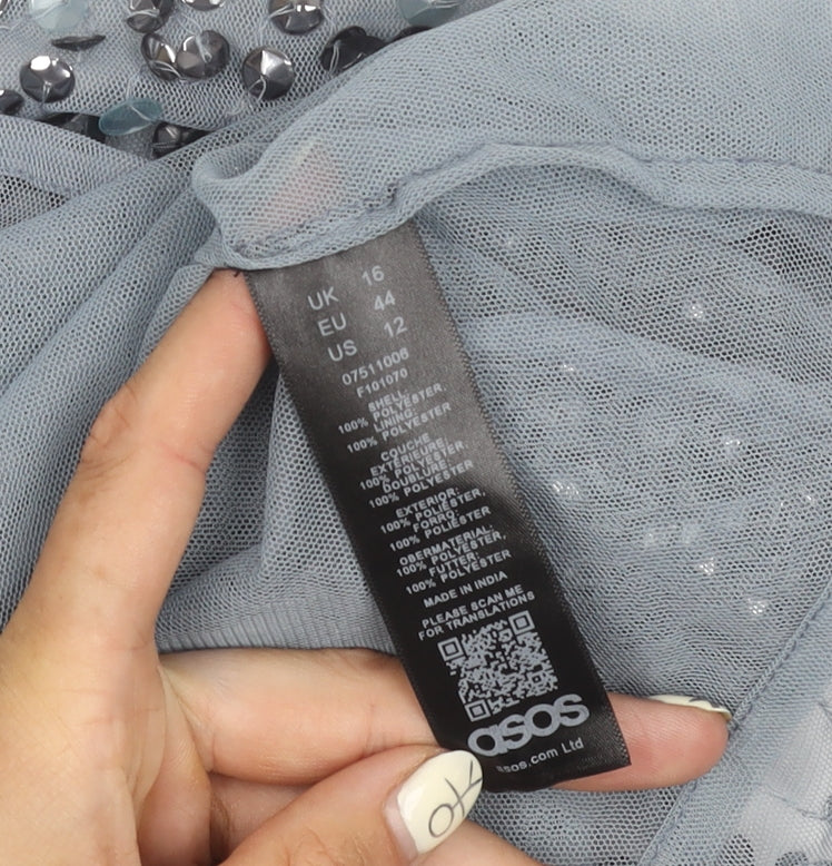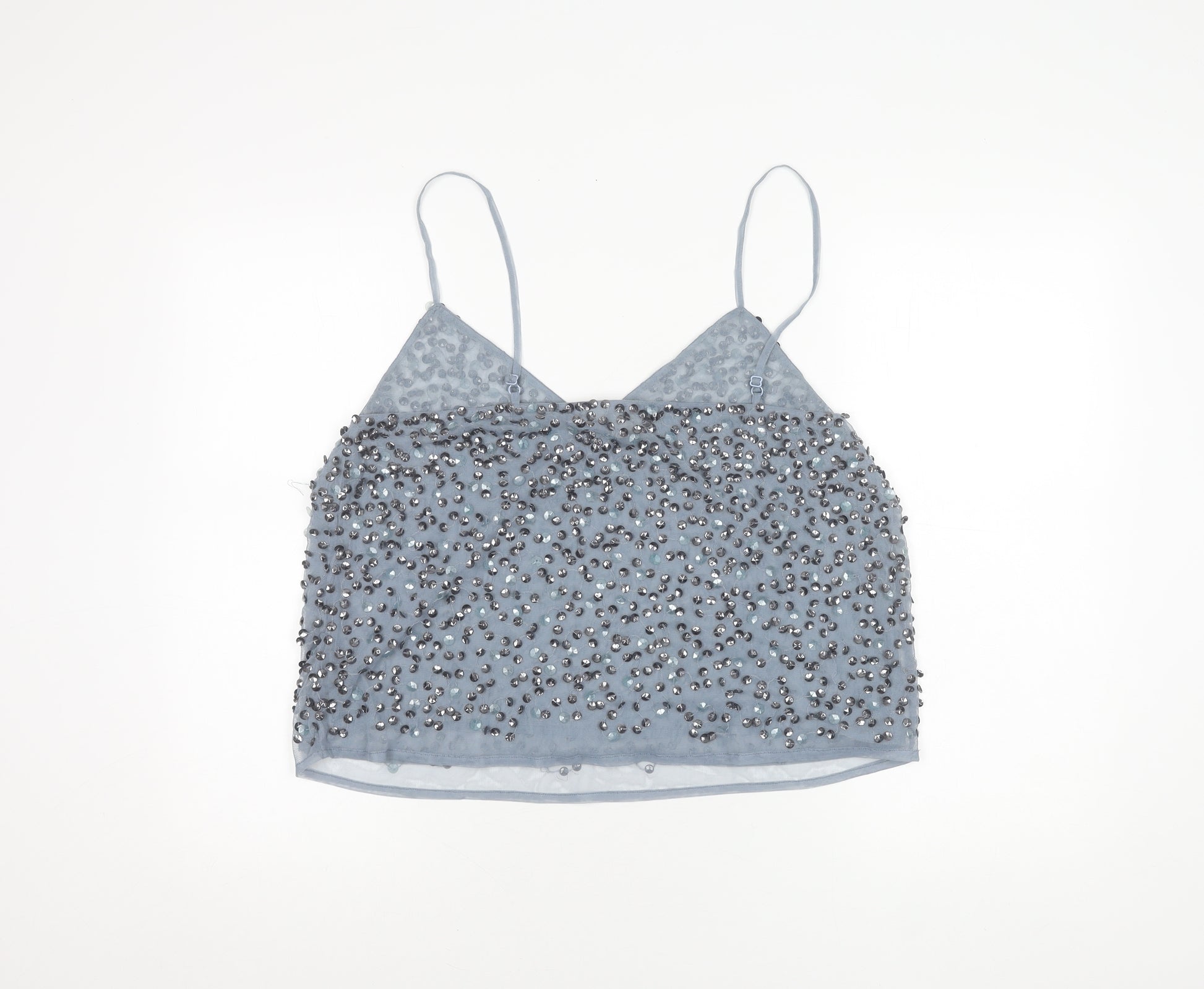 Step into the limelight with this stunning ASOS Women's Grey Sequin Camisole Blouse in Size 16. Elegantly designed for the modern woman, this blouse is perfect for those captivating party or cocktail events. Its shimmering sequin accents add a touch of sparkle, ensuring you are the centre of attention. Crafted from breathable and lightweight mesh fabric, this camisole showcases a polished V-neckline and delicate spaghetti straps that provide an adjustable fit for ultimate comfort. The classic grey hue offers a versatile and sophisticated look, making it a timeless addition to your wardrobe. Made entirely of polyester, this top is easy to care for with its hand wash requirements. Whether you're pairing it with sleek trousers or a chic skirt, this blouse promises to elevate your style effortlessly. Suitable for spring and summer seasons, it's a must-have for your collection. Grace your occasion with elegance and modern appeal by choosing this ASOS cami, designed to make you shine with confidence.