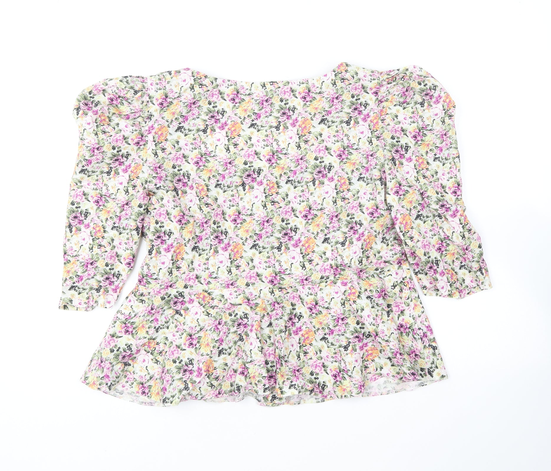 Womens Multicoloured Floral Cotton Basic Blouse Size 14 Square Neck
