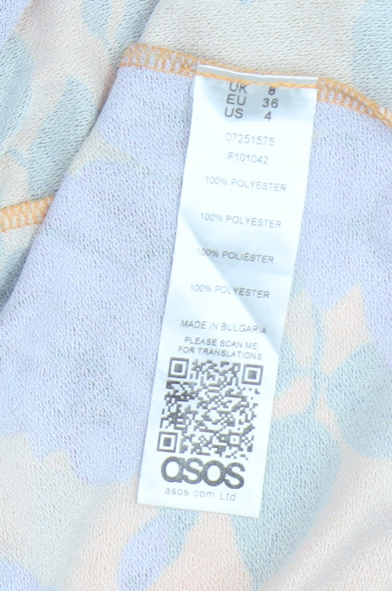 This ASOS women's midi dress is the perfect addition to your spring and summer wardrobe. Designed with a stylish A-line silhouette, this dress flatters all figures. The multicoloured floral pattern, adorned with vibrant purple roses against a bright yellow background, gives it a distinct bohemian vibe, ideal for casual outings or a lively cocktail party. Featuring an off-the-shoulder neckline and cold shoulder sleeve style, it adds a touch of elegance and flair. Crafted from lightweight jersey fabric, it ensures comfort and breathability. The material is fully composed of polyester, making it machine washable for your convenience. Accented with playful ruffles, this dress carries a carefree charm. With a lined interior, it promises a seamless fit and finish. It has a pullover closure, making it easy to wear, offering a fuss-free experience whenever you choose to step out. Brand new with tags, its pristine condition ensures that you attain a product that looks fresh off the racks. Whether you're planning a dreamy day out or a fun evening, this ASOS midi dress will become your go-to choice. Embrace your style this season with a dress that combines comfort, beauty, and elegance.