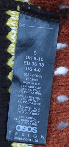 Step into style with this vibrant ASOS Women's Striped Cardigan, perfect for adding a touch of colour and comfort to your autumn and winter wardrobe. Crafted from a luxurious blend of 72% acrylic, 21% cotton, and 7% polyamide, this regular fit, long-sleeve cardigan is both stylish and cosy. The rich multicoloured stripes make it a standout piece, ideal for casual occasions. With a size S fit, it's perfect for layering over your favourite top or dress. The open-knit style adds a touch of elegance, while the lightweight fabric is breathable yet warm. Whether you're heading out for a casual day or snuggling up at home, this cardigan is your go-to choice. Hand wash only to keep it looking its best. Enhance your collection with this striking piece and enjoy the season in style.