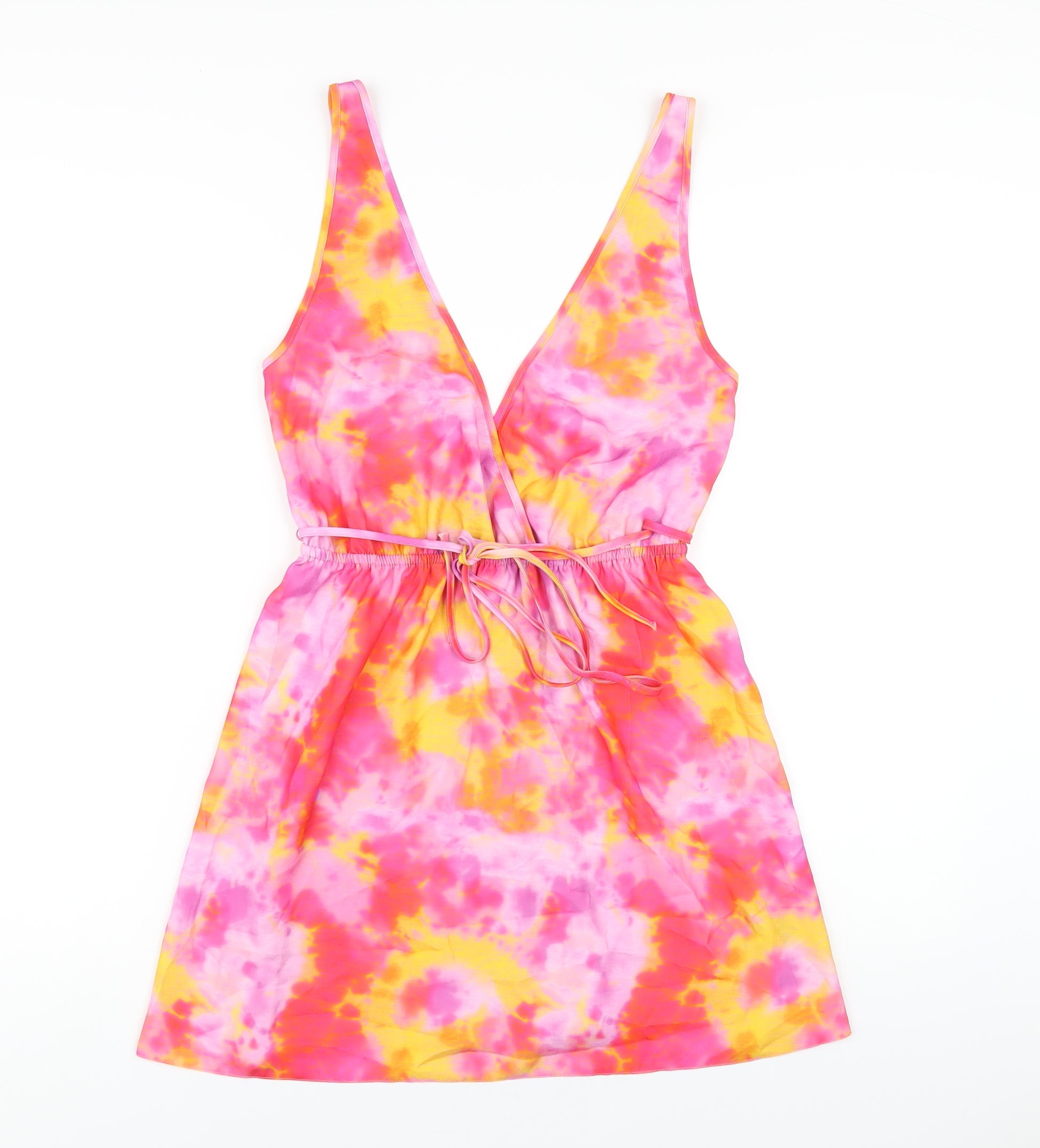 Womens Multicoloured Tie Dye Polyester Tank Dress Size 8 V-Neck Pullover