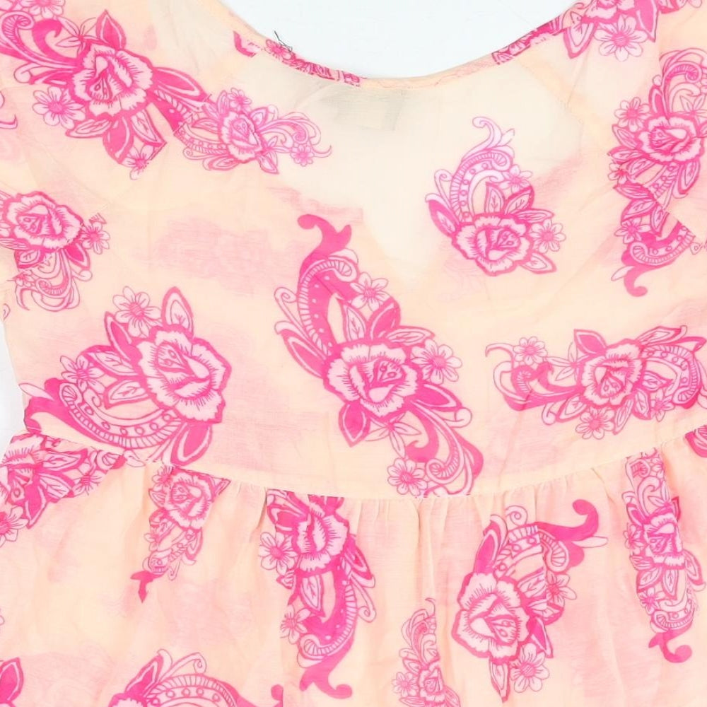 Womens Pink Floral Polyester Mini Size 8 Scoop Neck Pullover - Sheer
