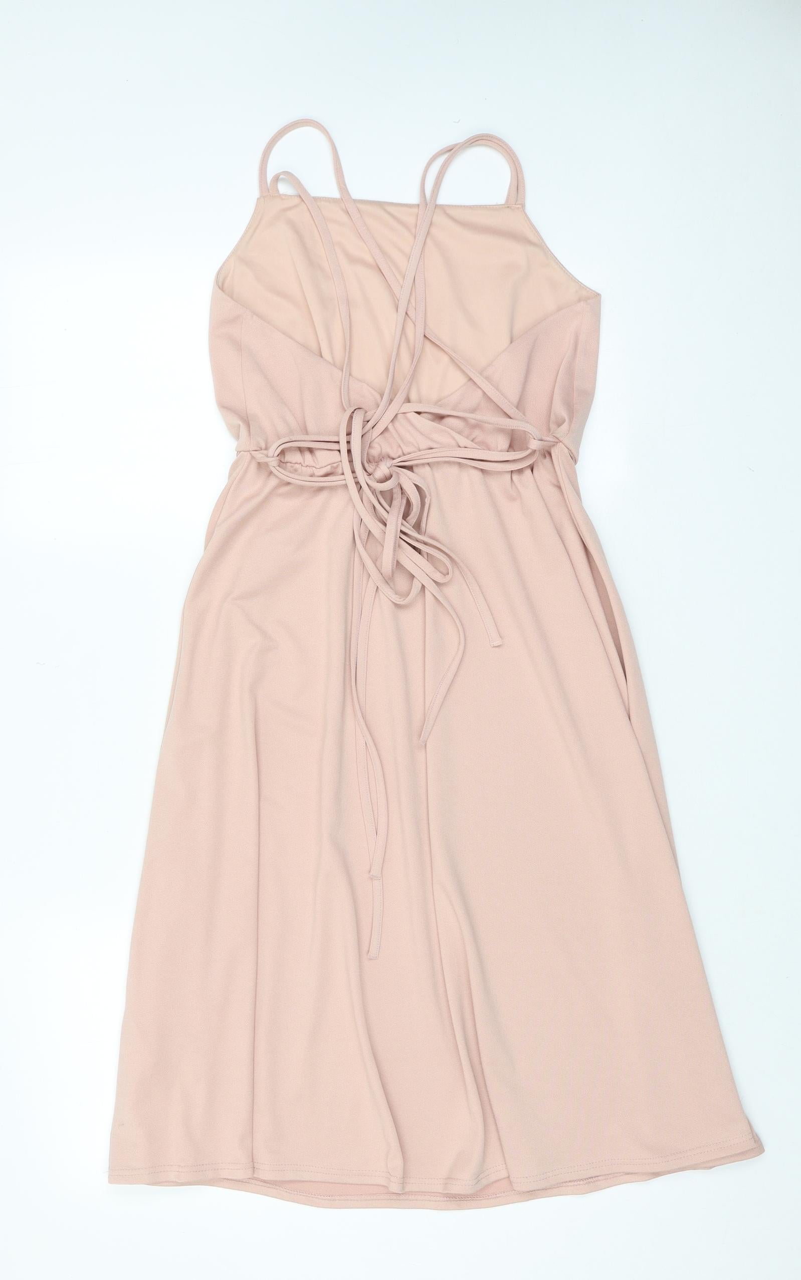Womens Pink Polyester A-Line Size 10 Square Neck Tie
