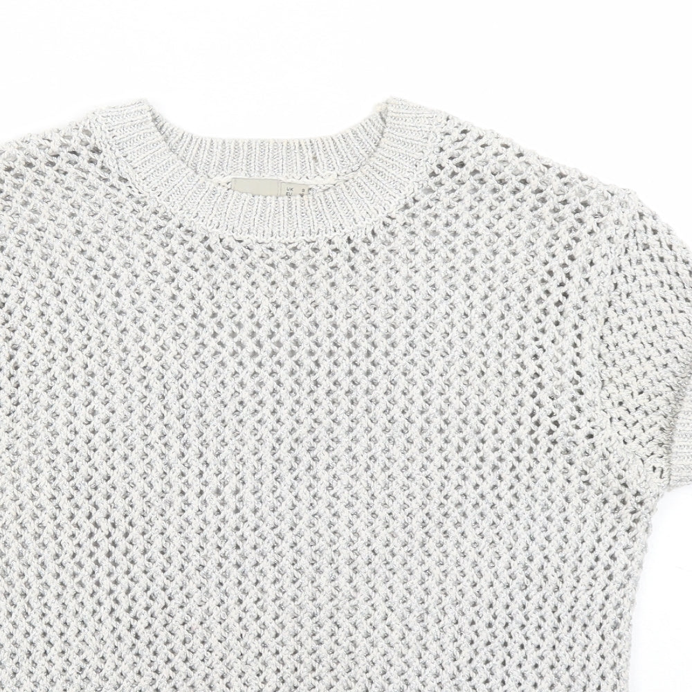 Womens Silver Round Neck Cotton Pullover Jumper Size 8