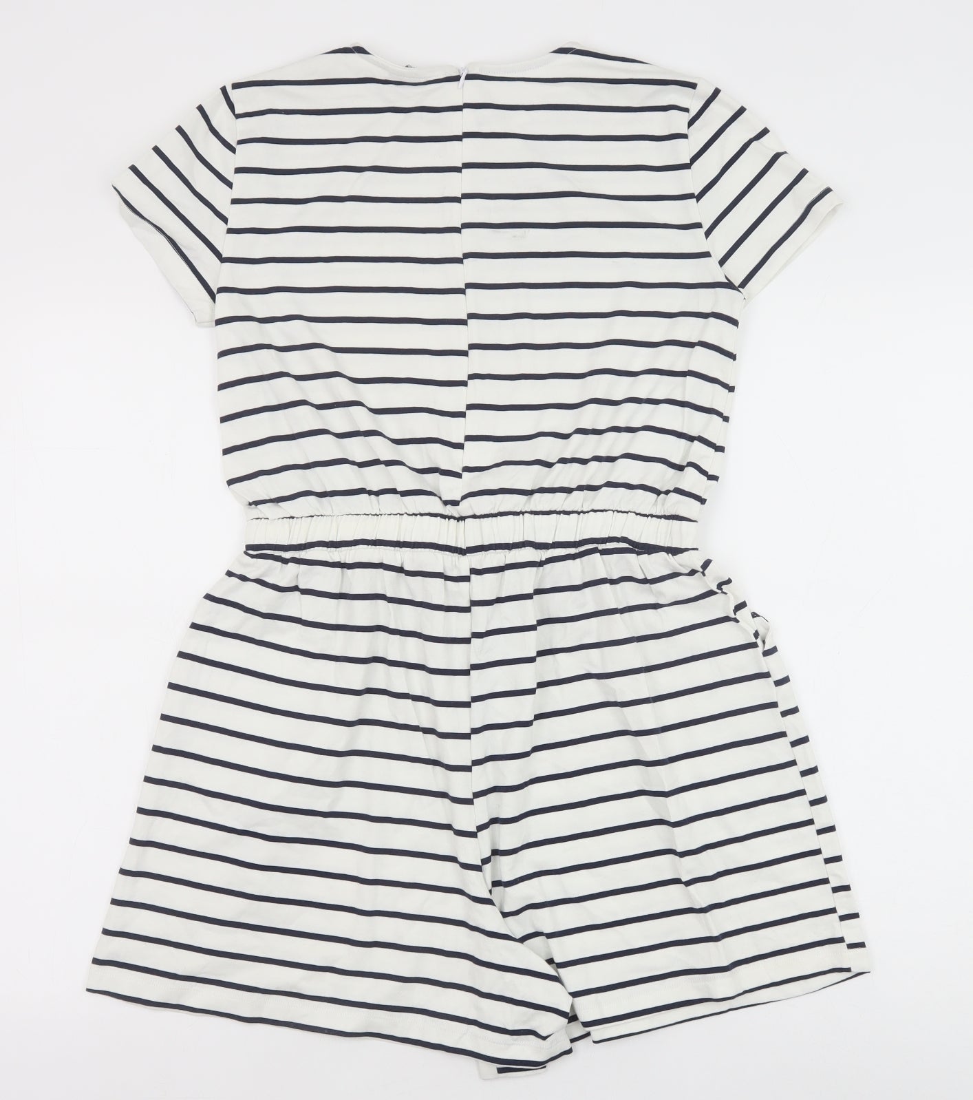 Womens White Striped Polyester Playsuit One-Piece Size 10 Drawstring