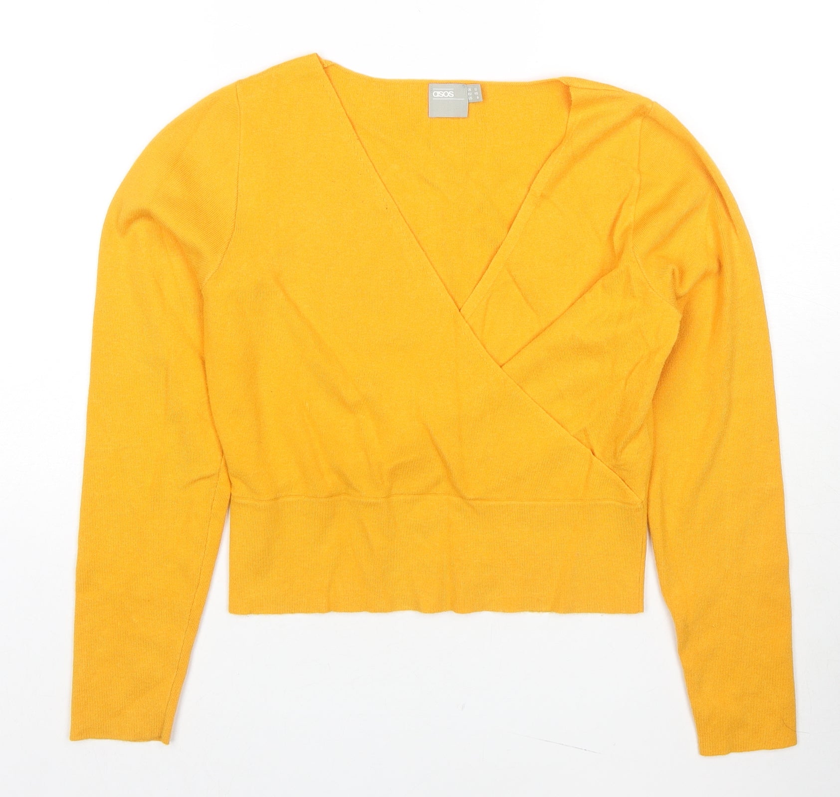 Womens Yellow V-Neck Viscose Pullover Jumper Size 12