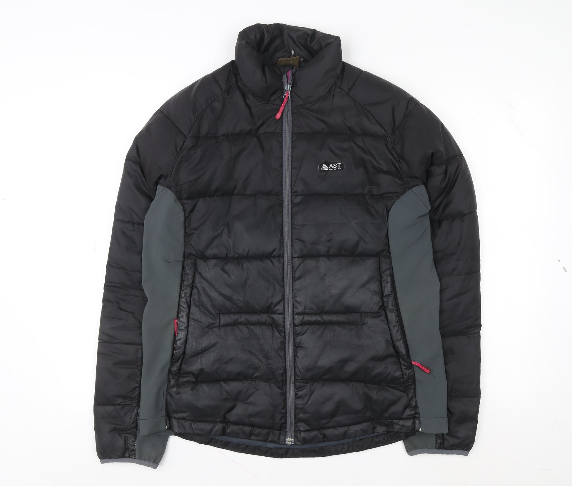 Keep out the chill with this AST Women's Black Puffer Jacket, designed for reliable warmth and comfort during the colder months. Crafted from durable polyester with a soft lining, this mid-length jacket provides a cosy insulated feel while maintaining a lightweight construction that’s perfect for layering. The sleek black outer shell is enhanced with subtle grey panels for a modern, sporty look. Designed with practicality in mind, it features a secure full front zip fastening and convenient zipped side pockets to keep your essentials safe while on the go. The high collar offers added protection from the wind, making it an ideal choice for outdoor activities, travel, commutes, or everyday wear. The regular fit ensures a flattering silhouette, allowing ease of movement without sacrificing shape. Built for active lifestyles, the jacket performs well in transitional weather, offering excellent insulation for autumn and winter seasons. With its simple, versatile design, this AST jacket effortlessly pairs with jeans, leggings, or outdoor trousers for a smart yet functional outfit. Suitable for a range of casual settings, it conveys both comfort and performance. Condition is excellent with minimal signs of previous wear, showing no tears, stains, or visible damage – ready to wear straight away. A dependable addition to your wardrobe, this casual yet stylish black puffer jacket delivers warmth, practicality, and timeless design at great value for money. Whether heading into the city or taking on the countryside, it ensures you stay comfortable and protected wherever your day takes you.