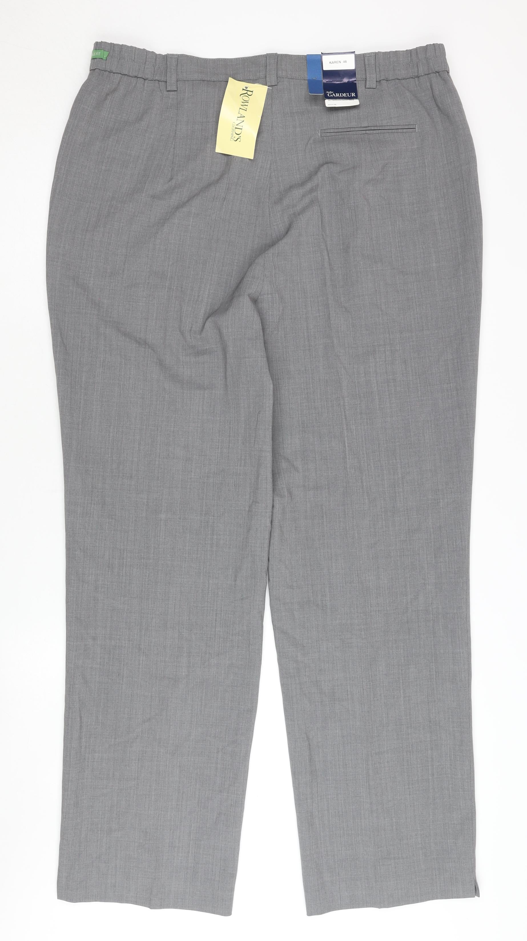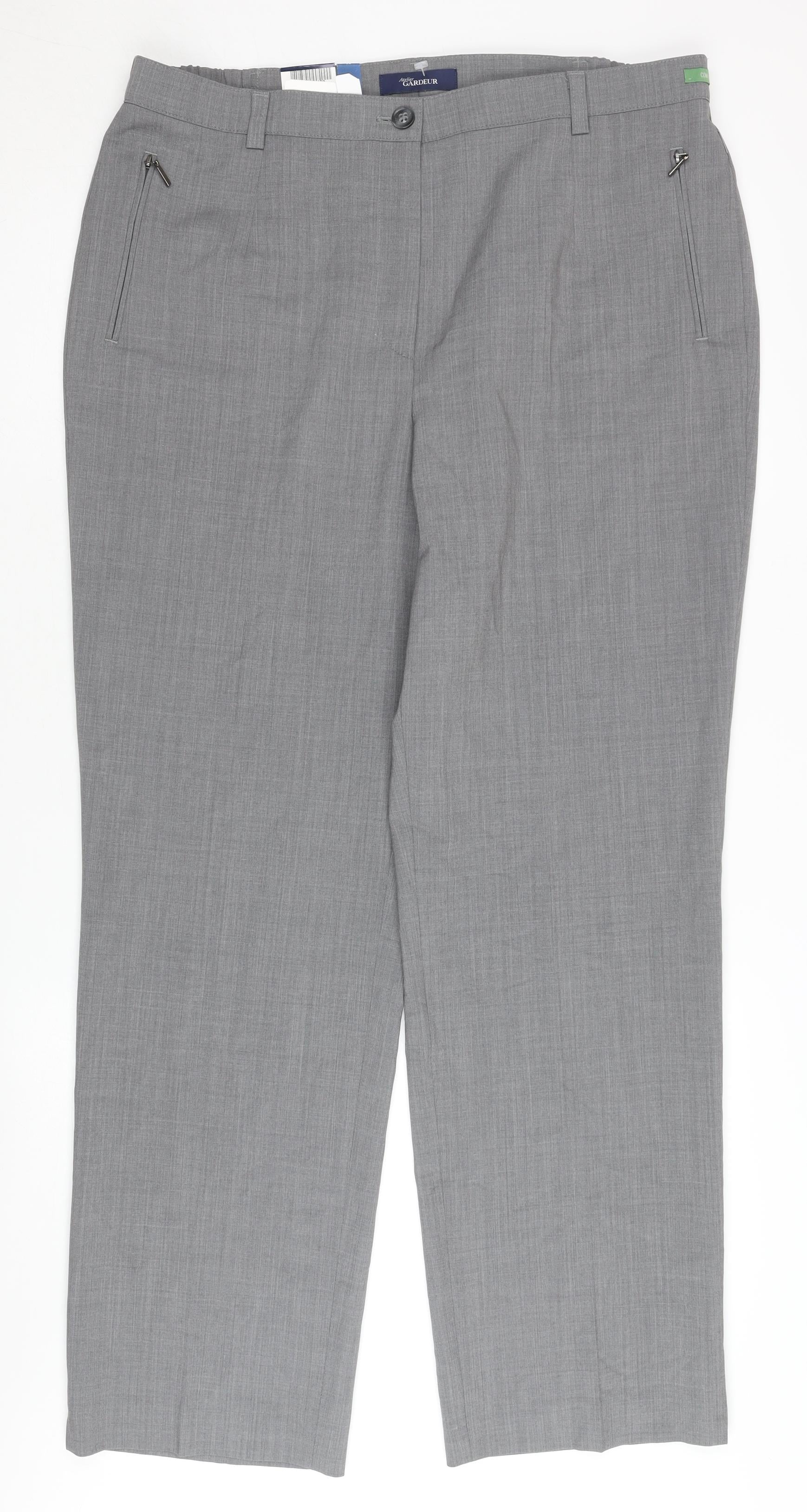 Discover the comfort and elegance of these Atelier Gardeur women's trousers, perfect for a polished workwear look. In a sophisticated grey colour, these trousers are designed to suit any formal or business occasion with ease. Crafted from a premium blend of materials, comprising 52% polyester, 43% wool, and 5% elastane, they offer both durability and stretch for a comfortable fit. These trousers feature a classic flat front for a streamlined appearance, enhanced by a secure button closure. With a regular size type, these trousers cater to a UK size 20, ensuring a flattering fit for a variety of body shapes. The minimalist design is accentuated by the sophisticated fabrication, making them an ideal choice for a professional wardrobe. Whether attending a meeting or enjoying a casual day at the office, these trousers maintain their stylish appearance throughout the day. Machine washable for easy care, these trousers are both practical and stylish. New with tags, they are ready to become a staple in your wardrobe. Elevate your everyday business ensemble with the timeless style and exceptional quality of Atelier Gardeur.