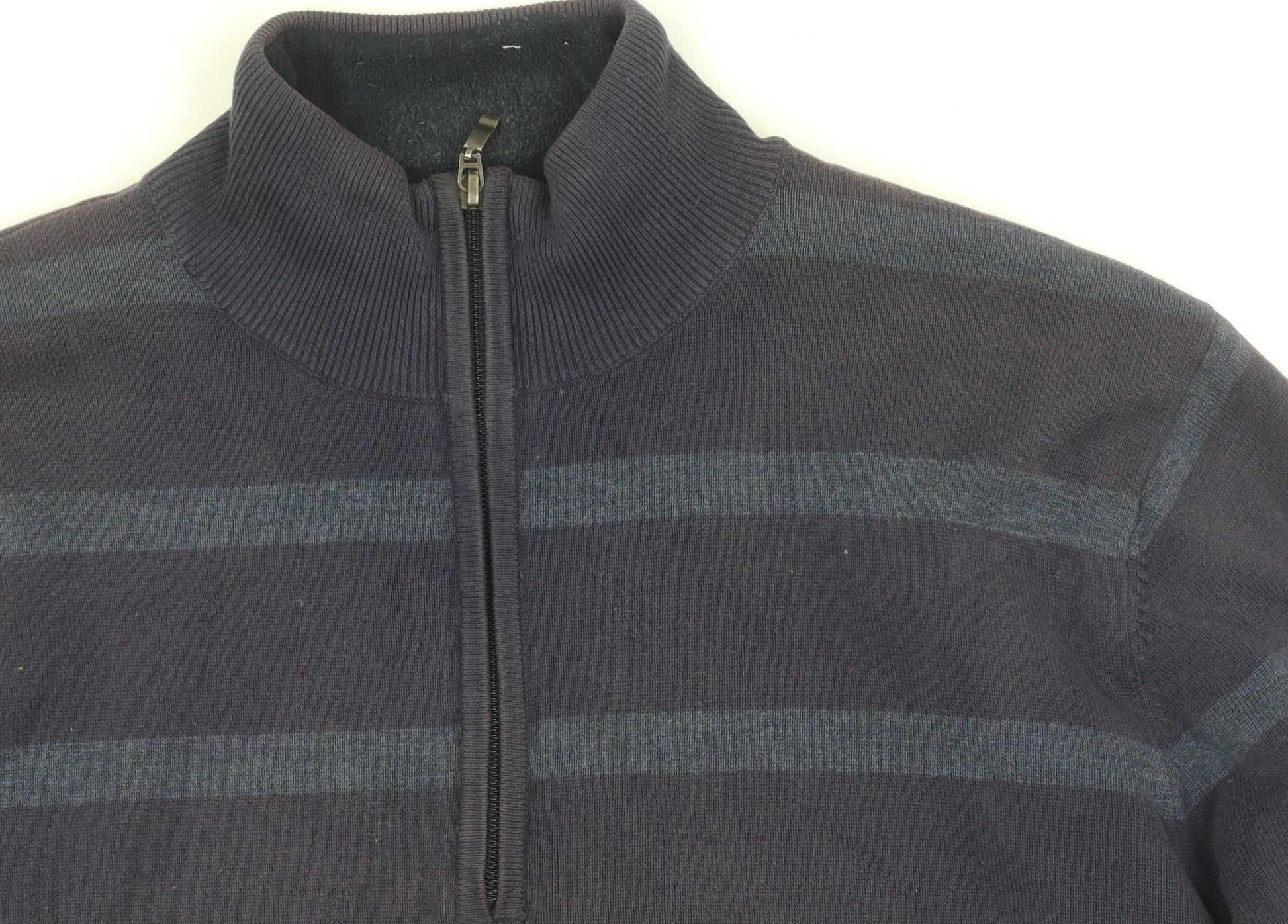 Dive into the classic comfort of the Atlantic Bay Men's Blue Full Zip Fleece Sweatshirt, expertly designed to offer warmth and style during the cooler months. Crafted with care, this medium-sized sweatshirt features a soothing blue hue with an elegant striped pattern, ideal for elevating any casual ensemble. The high neck and 1/2 zip closure provide versatile coverage, allowing for easy layering and temperature control, making it an excellent choice for both autumn and winter seasons. Constructed from 100% cotton, this garment is not only soft and comfortable but also machine washable for effortless care. With long sleeves and a classic fit, this piece promises enduring style. Although rated in excellent condition, it shows slight wear with minimal lint, enhancing its vintage appeal. Ideal for men seeking reliable, casual outerwear, this sweatshirt combines functionality with timeless aesthetics. Perfect for a leisurely outing or a relaxed day indoors, it's a must-have staple for any wardrobe.