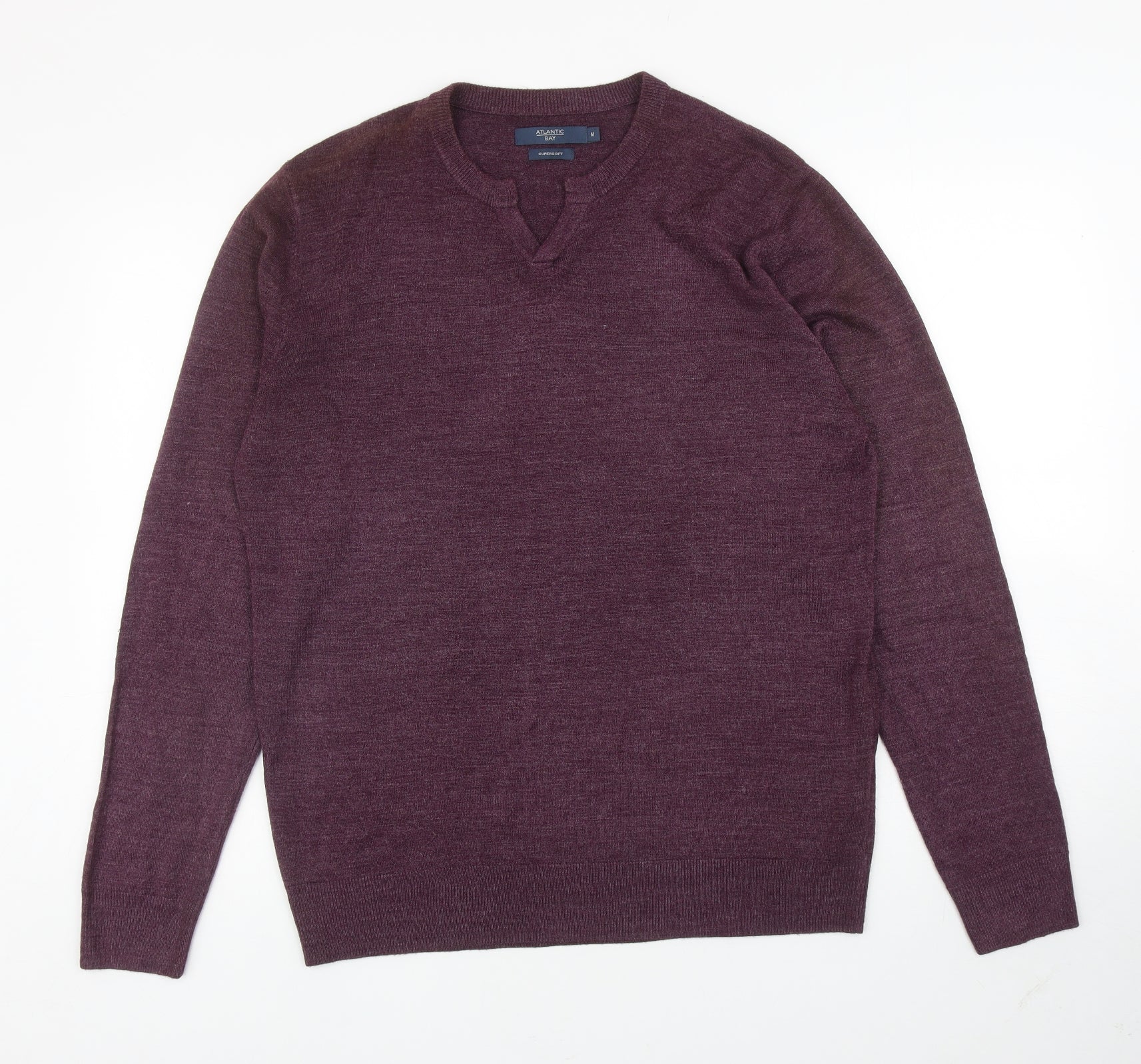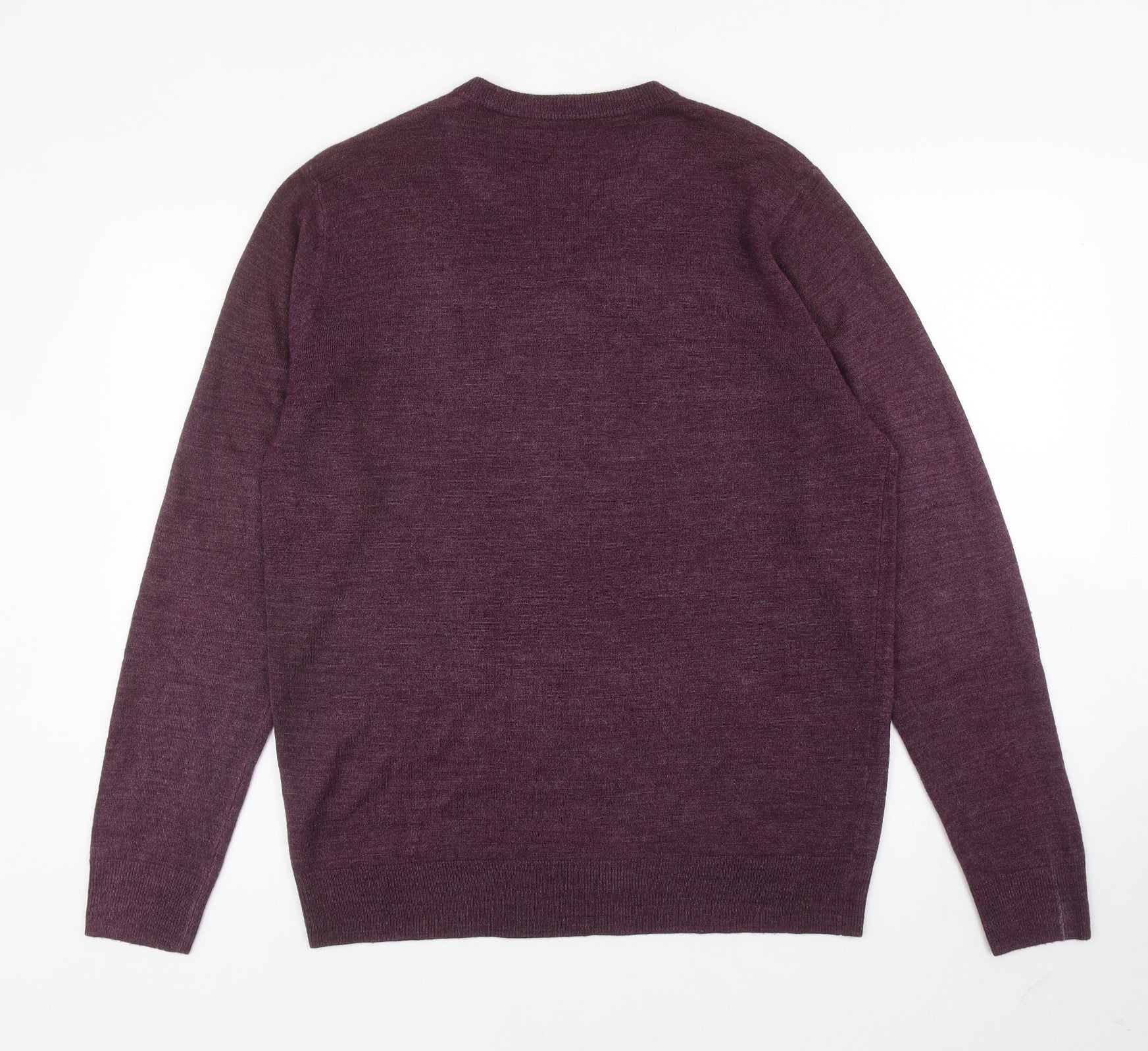 Mens Purple V-Neck Acrylic Pullover Jumper Size M