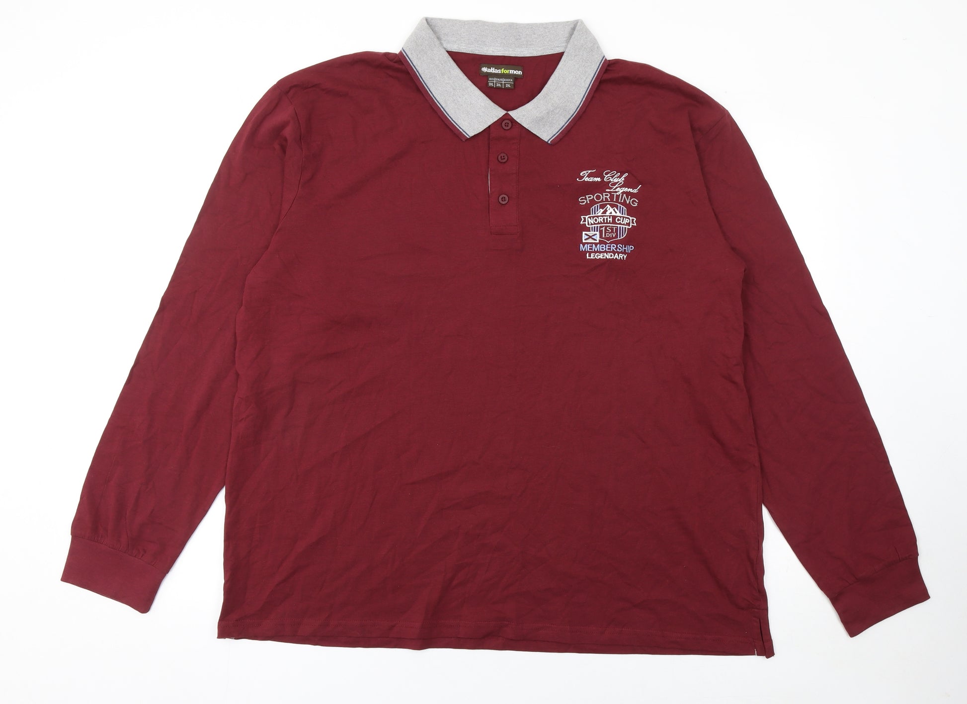 Burgundy Red Long Sleeve Cotton Polo Shirt Size 3XL
