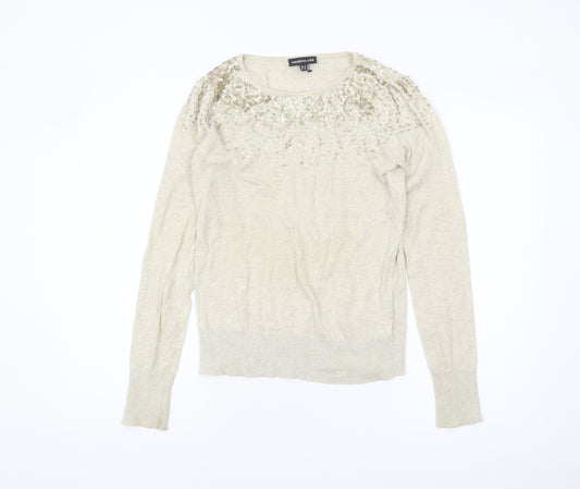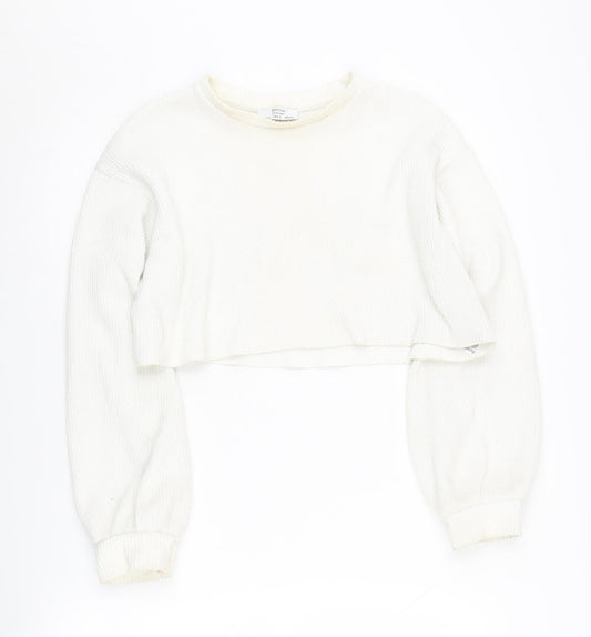 Next Women Ivory Open-Knit Relaxed Fit Cotton Jumper UK 8