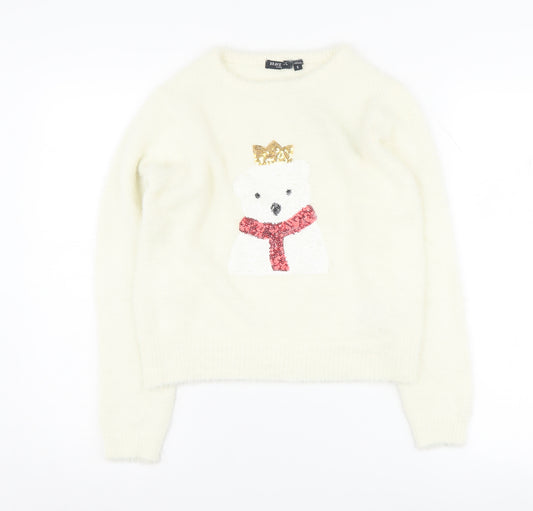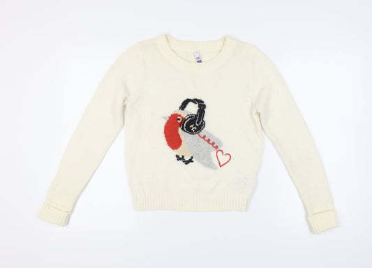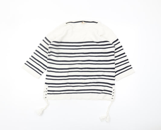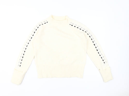 Next Women Ivory Open-Knit Relaxed Fit Cotton Jumper UK 8