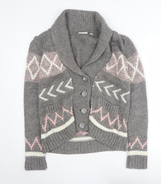 Grey Striped Womens Cardigan Size 8 (Regular)