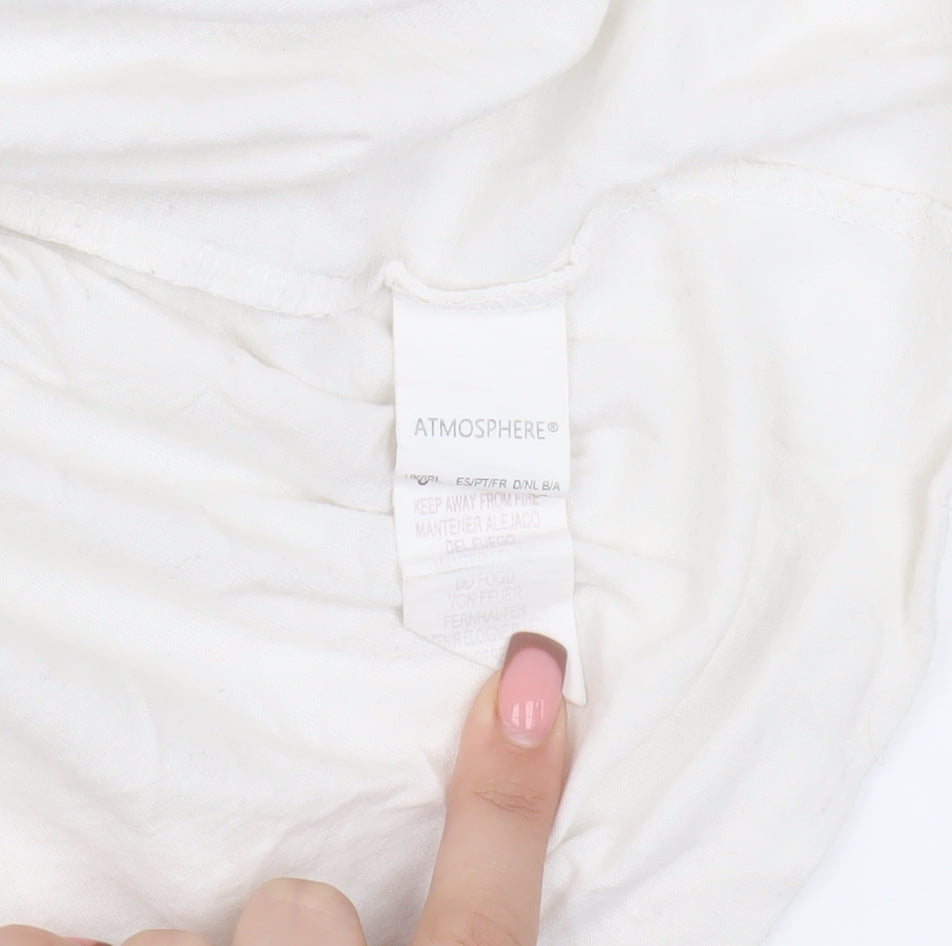 Celebrate your fandom with this stylish Atmosphere T-shirt featuring an iconic Game of Thrones quote. Perfect for women who appreciate a minimalist yet trendy style, this white basic tee showcases the quote: 'You Know Nothing Jon Snow', a must-have for any fan of the series. Designed in size 6 for a regular fit, the T-shirt is versatile enough to complement any casual wardrobe. Short sleeves and a crew neckline offer a classic look, suitable for all seasons. While the shirt exhibits a slightly worn look, adding to its character, the overall condition is good with minor wrinkles that highlight its authentic, beloved quality. Whether dressing up or down, this tee offers an easy pullover closure, making it a comfortable choice for day-to-day wear. Embrace simplicity with the solid pattern that pairs effortlessly with jeans or skirts, delivering a laid-back vibe. Add a touch of wit and fantasy to your collection with this unique piece from Atmosphere.