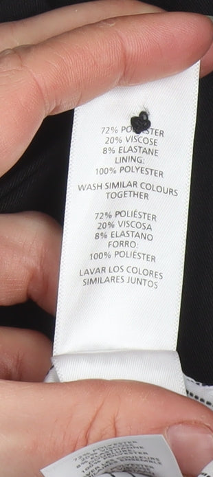 This sophisticated black blazer from Atmosphere is a timeless wardrobe staple designed for women seeking a blend of style and versatility. Crafted from a soft yet durable fabric blend of 72% polyester, 20% viscose, and 8% elastane, it provides a comfortable fit with a hint of stretch for ease of movement. The black tone gives it a classic, polished look suitable for both professional and formal occasions. Featuring a single-breasted front with a one-button closure, it delivers a flattering tailored silhouette that defines the waist without compromising comfort. The lightweight construction, combined with a full polyester lining, ensures breathability and comfort across multiple seasons, particularly in spring and autumn. Its structured design enhances confidence in any business or smart-casual setting, whether paired with trousers or a skirt. The long sleeves and notched lapels add a contemporary, professional touch while maintaining femininity. Ideal for office wear, meetings, or dressier events, this blazer elevates everyday outfits with an effortlessly smart finish. The quality craftsmanship from Atmosphere shines through in the neatly stitched seams and lined interior. In excellent pre-loved condition, this blazer shows minimal signs of wear, maintaining a well-kept appearance ready for many more outings. Stylish, flattering, and versatile, this women’s black blazer is perfect for assembling outfits that exude confidence and classic charm.