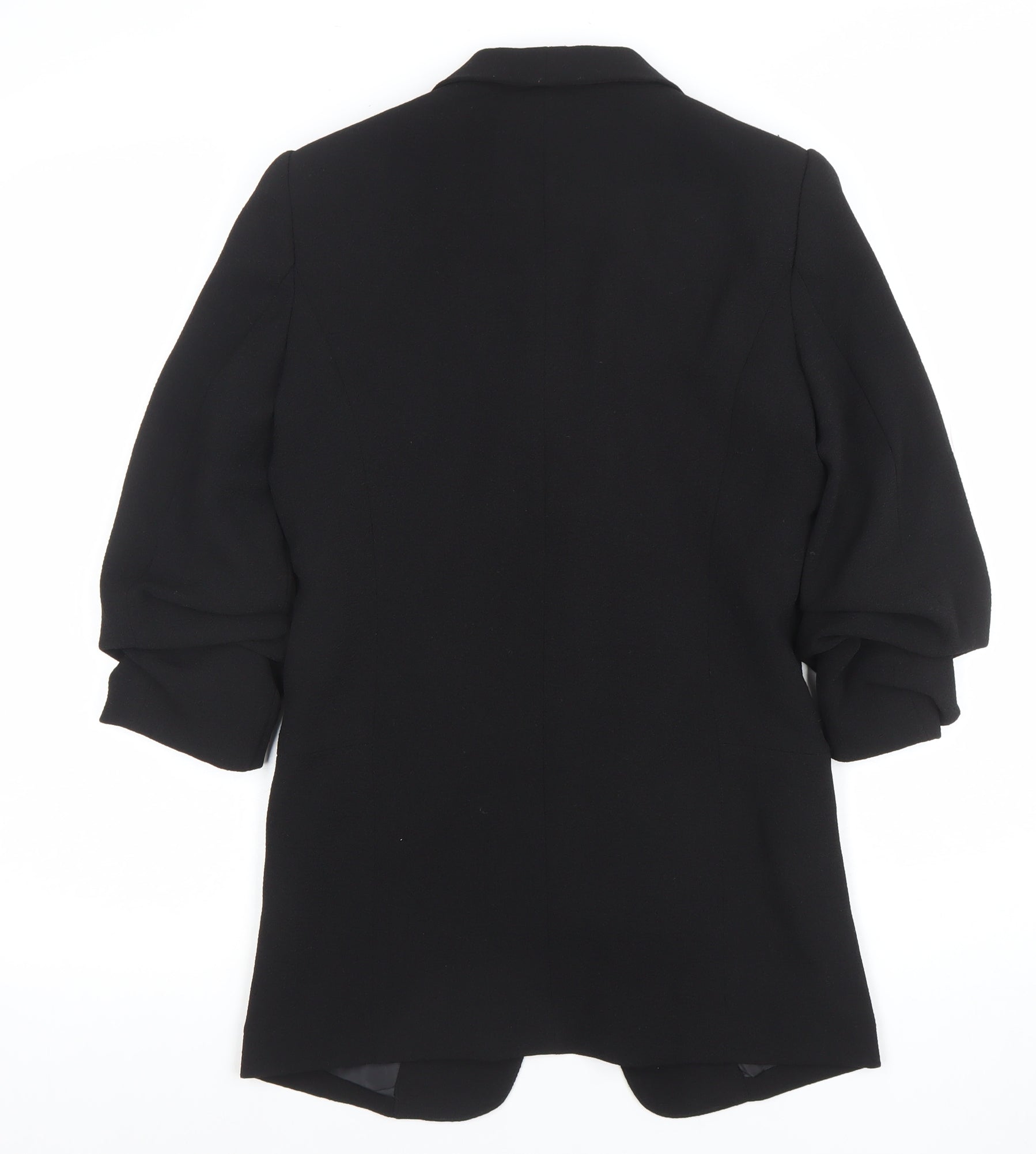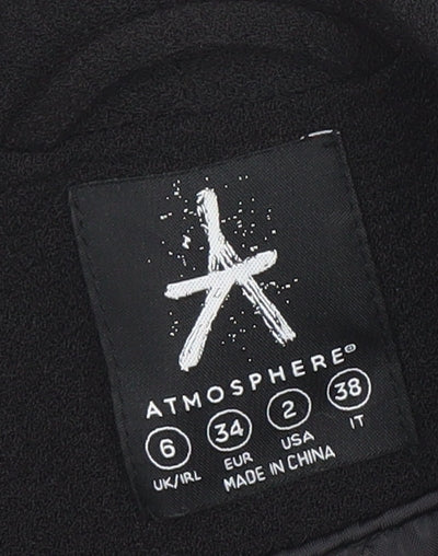 This elegant Atmosphere black blazer for women delivers a refined, versatile look perfect for business, workwear, or smart casual occasions. Designed in a UK size 6, it offers a classic tailored shape with a flattering shawl lapel and a smooth, mid-length cut for a sleek silhouette. The woven fabric blend of 98% polyester and 2% elastane provides both durability and subtle stretch, ensuring lasting comfort and shape retention. Fully lined in 100% polyester for a polished interior finish, this blazer features practical front flap pockets and a single-breasted open front, maintaining a minimalist yet professional look ideal for pairing with trousers, dresses, or skirts. The cropped 3/4 sleeves bring a modern edge, making the piece versatile for all seasons, particularly autumn and spring when lightweight layering is essential. Ideal for the office, meetings, or evening social events, the jacket’s rich black tone adds depth and sophistication to any outfit combination, complementing both neutral and bold accessories. Carefully maintained in excellent condition, this piece shows minimal signs of wear and remains fresh, clean, and ready to wear. A must-have wardrobe staple for the style-conscious woman seeking effortless elegance, this Atmosphere blazer offers timeless appeal, practicality, and superior comfort at great value. Suitable for workdays and classy evenings alike, its tailored fit enhances confidence and charm, cementing its role as a versatile essential in any modern wardrobe.