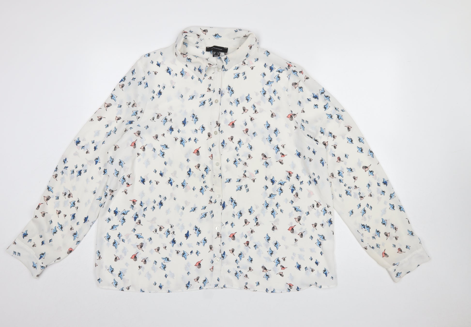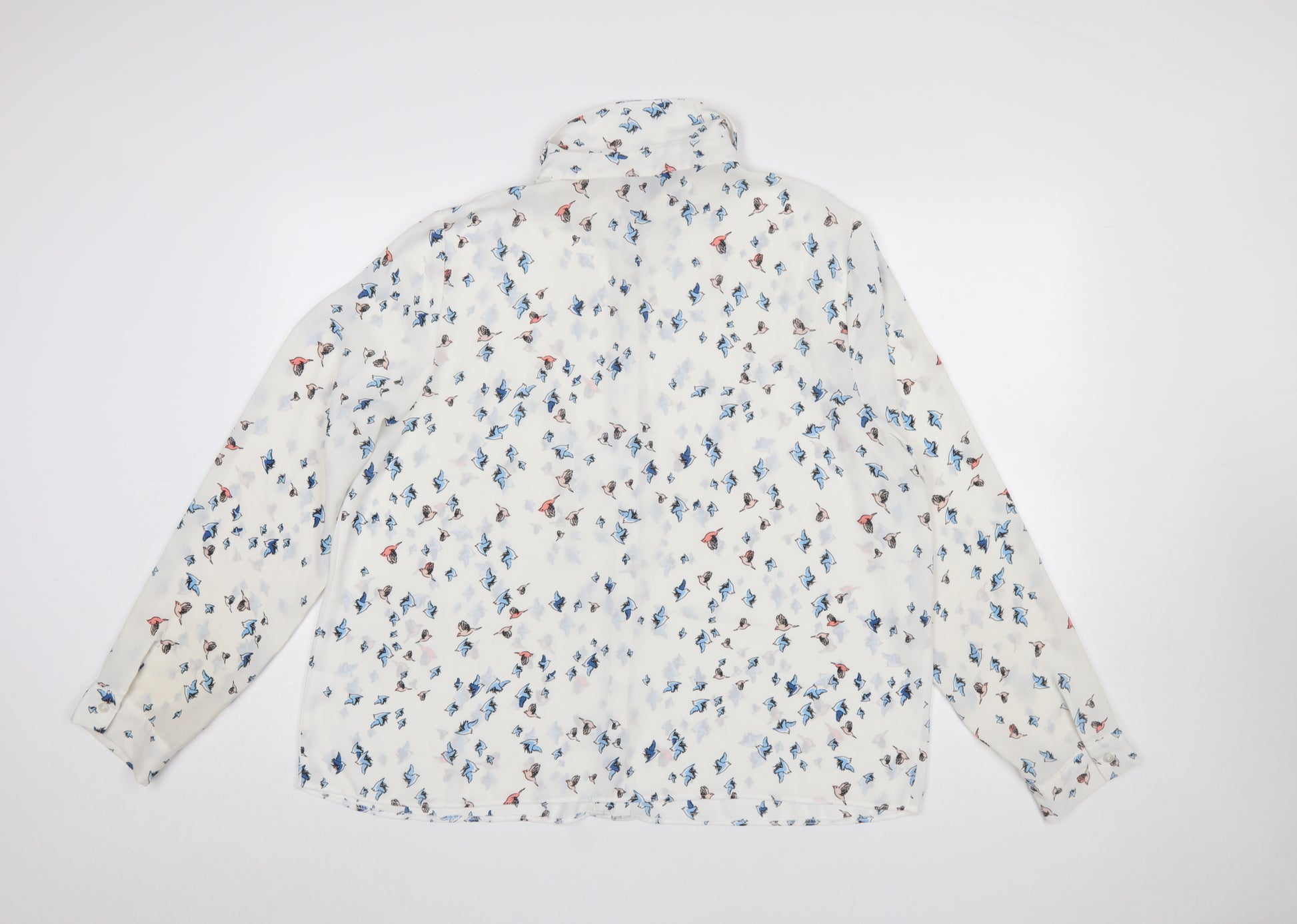 Women’s White Bird Print Long Sleeve Collared Blouse Size 20