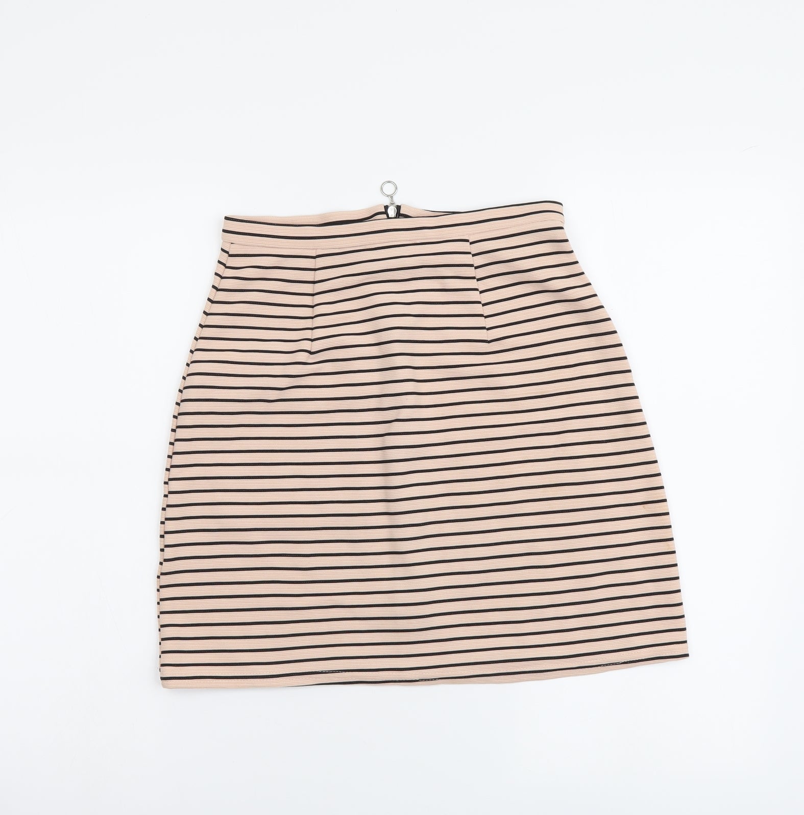 Womens Beige Striped Polyester Mini Skirt Size 8 Zip