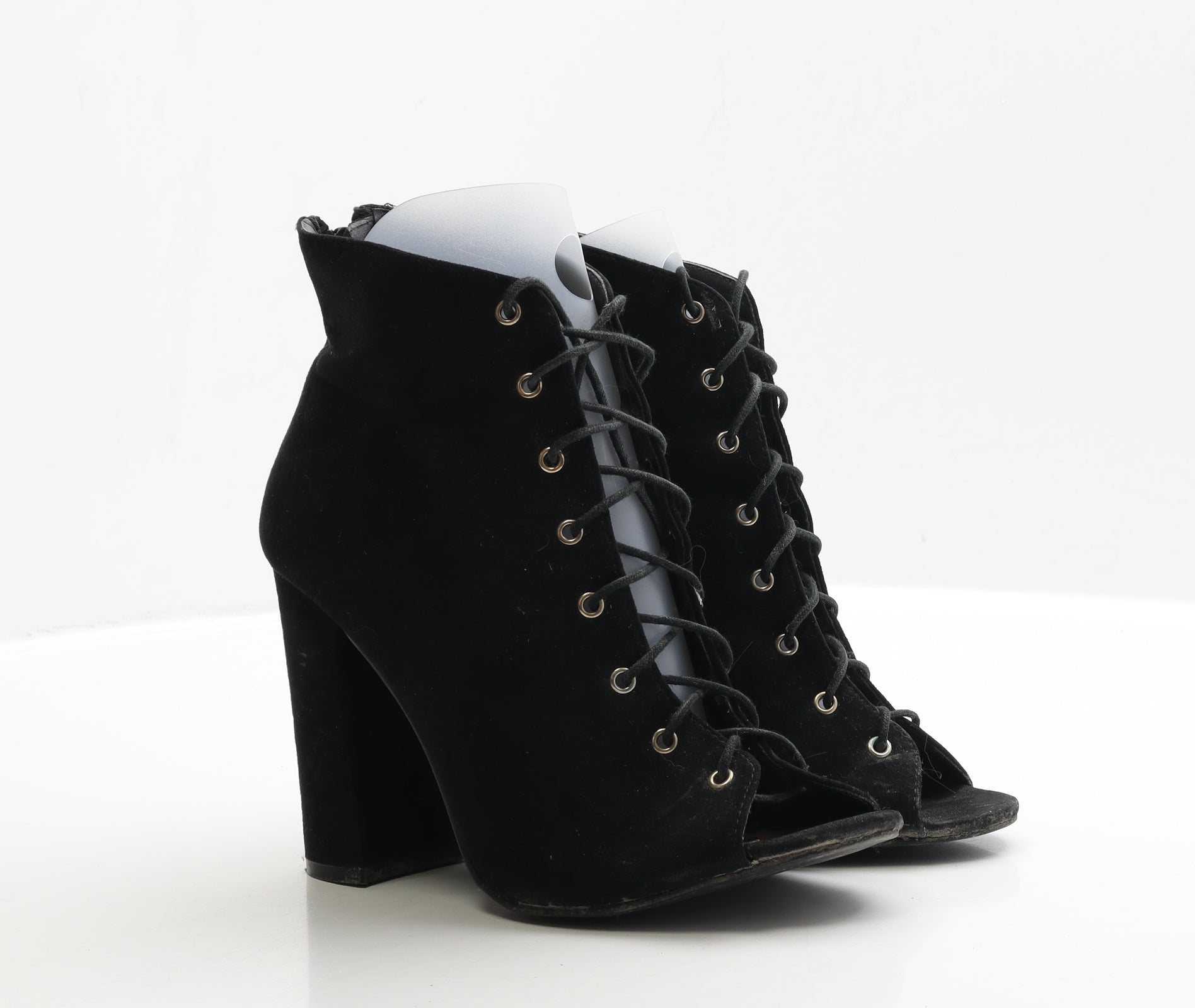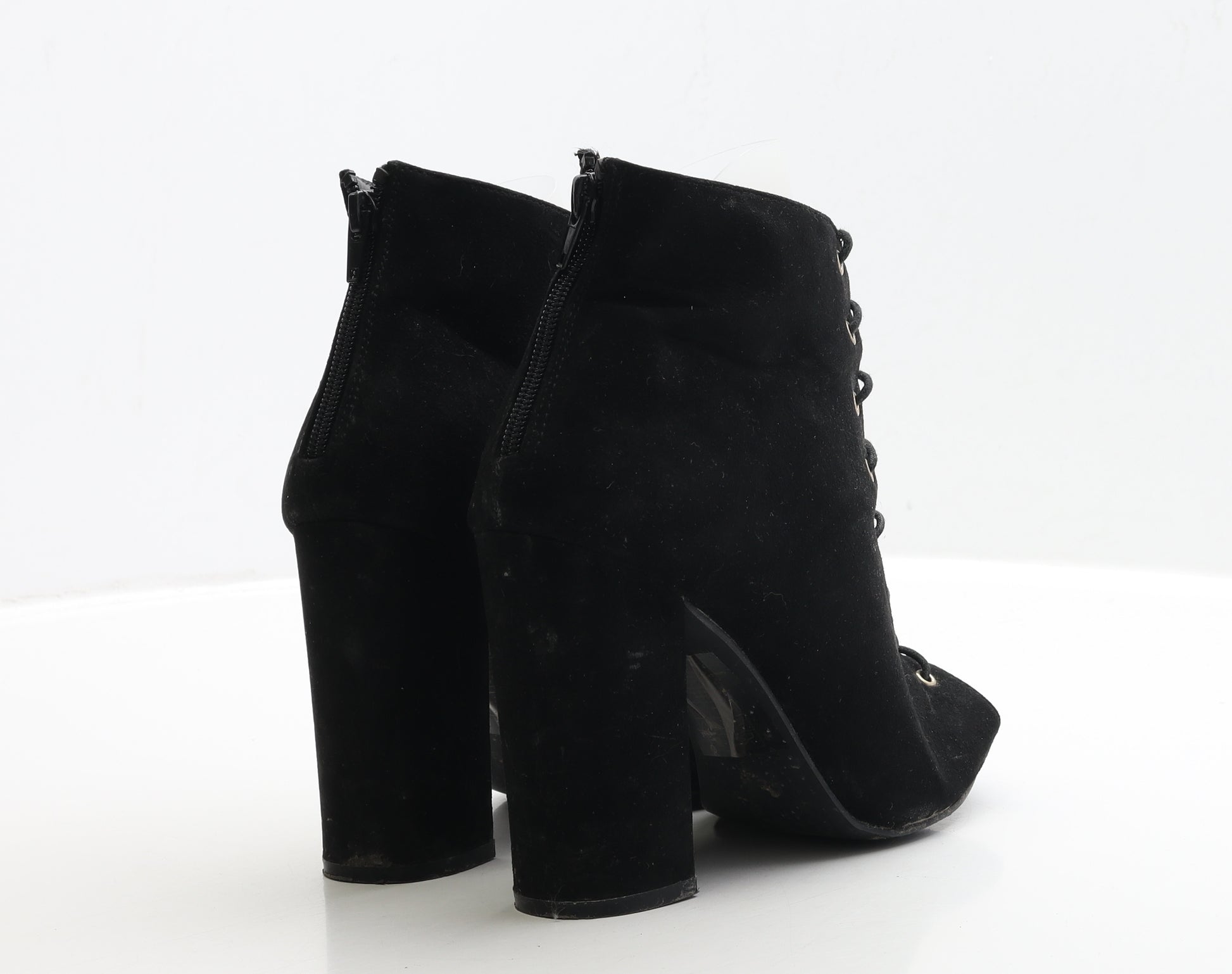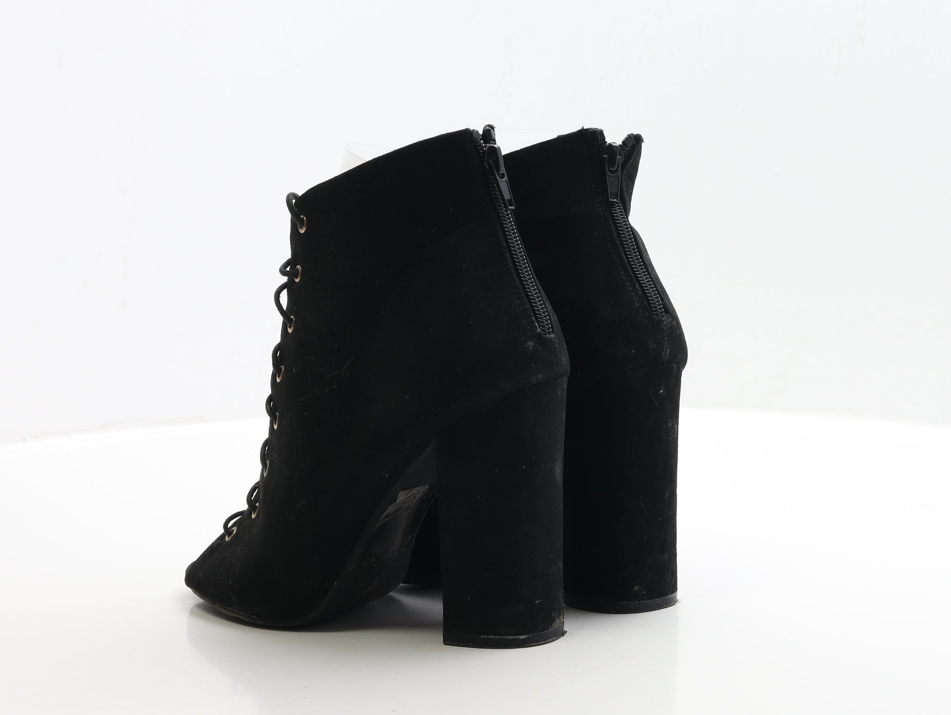 Womens Black Faux Suede Bootie Boot UK 6 EUR 39 - Lace up