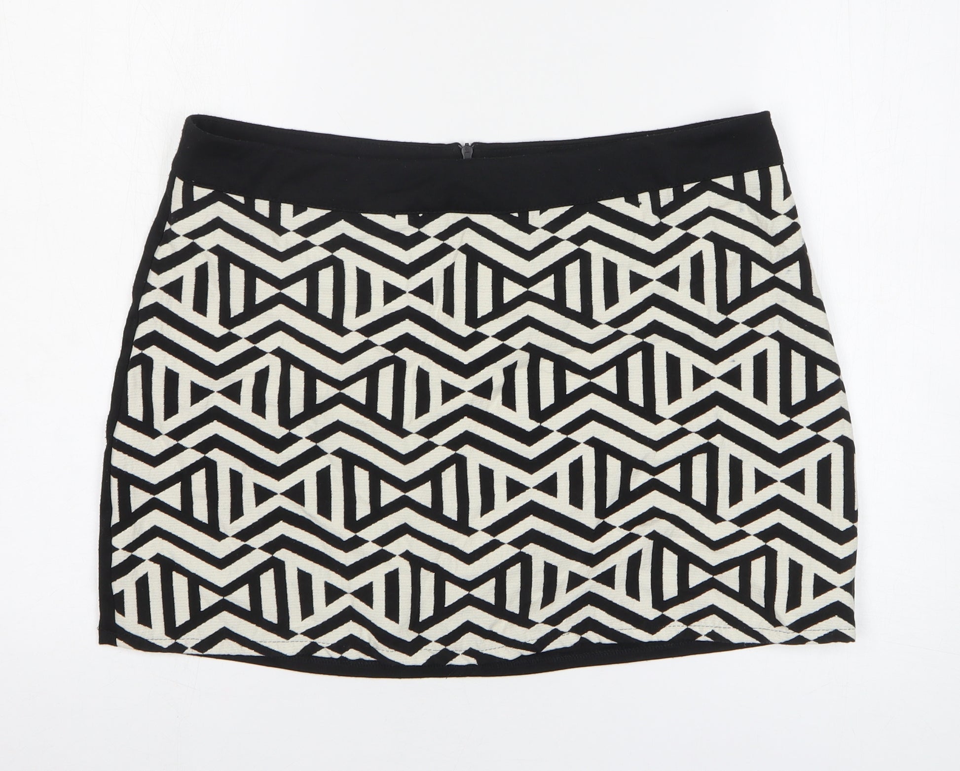 Womens Black Geometric Cotton Mini Skirt Size 16 Zip