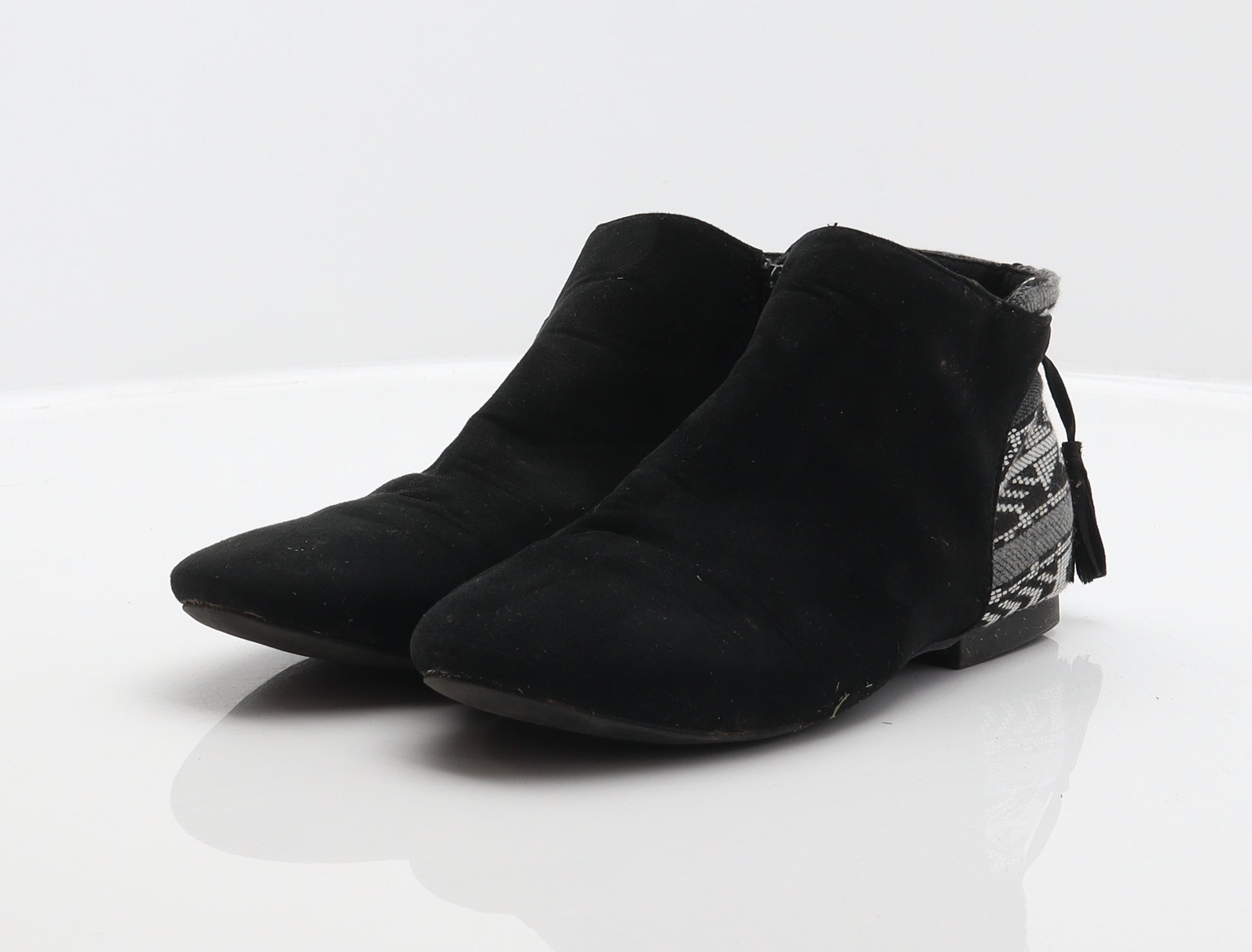 Womens Black Geometric Polyester Bootie Boot UK 4 37