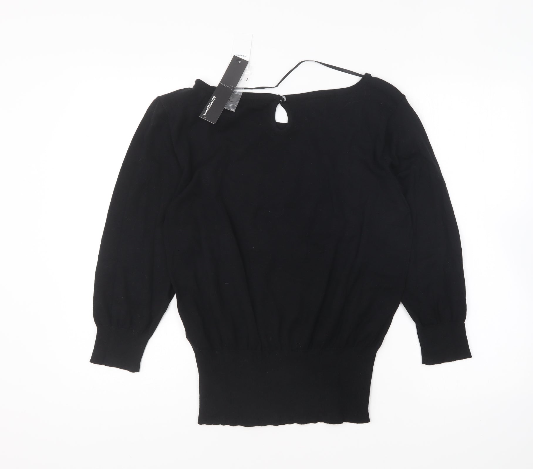 Womens Black Round Neck Cotton Pullover Jumper Size 16