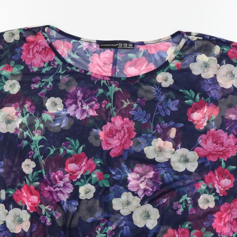 Womens Blue Floral Mesh Basic Blouse Size 10
