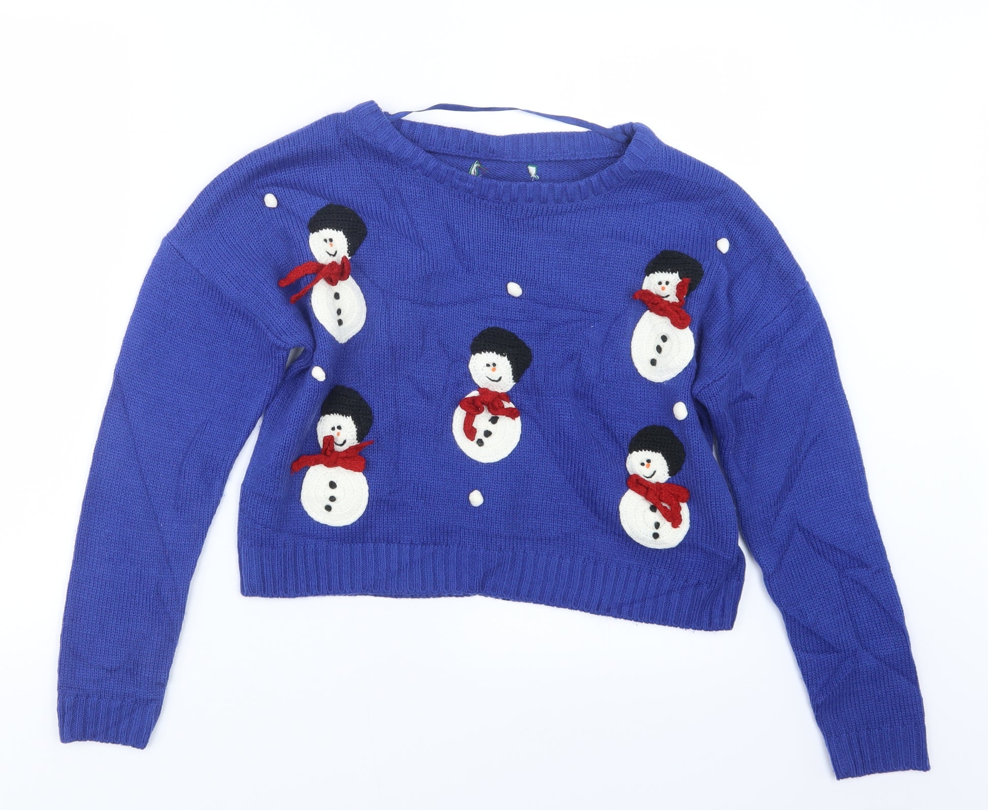 Womens Blue Knit Pullover Jumper Size 10 - Christmas