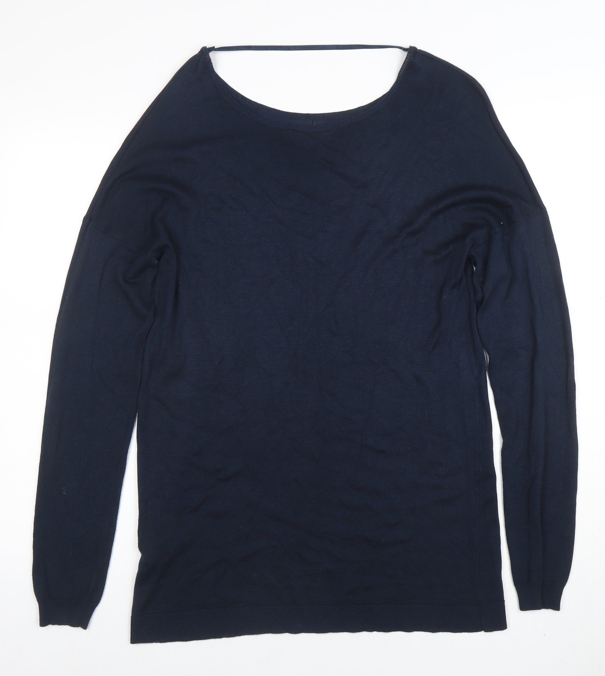 This beautiful Atmosphere women’s long sleeve blouse in a rich blue shade is a versatile wardrobe essential crafted for comfort and everyday style. Made from a soft and stretchy blend of viscose, polyamide, and elastane, this top offers a flattering fit that drapes elegantly on the body while allowing freedom of movement. The lightweight knit fabric provides breathability, making it perfect for layering across multiple seasons including autumn, spring, and winter. Featuring a classic boat neckline and long fitted sleeves, it delivers a simple yet refined silhouette suitable for casual outings, workwear, or relaxed weekend wear. The pullover closure ensures effortless dressing, while the regular fit ensures ease and comfort for daily use. Its solid colour design gives timeless appeal, making it easy to pair with jeans, skirts, or tailored trousers for various looks. Whether worn on its own or under a blazer or jacket, this piece provides understated elegance and practicality. The fabric’s soft stretch composition helps the garment retain its shape after washing and wear. Machine washable for easy care, this top is ideal for women seeking a balance between comfort and smart-casual styling. The blouse shows minimal wear with no defects or visible damage, ensuring an excellent used condition that still looks polished and presentable. With its minimalist styling and beautiful deep blue tone, this top adds a subtle yet sophisticated touch to any outfit, proving that simple designs never go out of style. Perfect for everyday wear, this Atmosphere knit blouse brings together comfort, quality, and versatility at an affordable value.