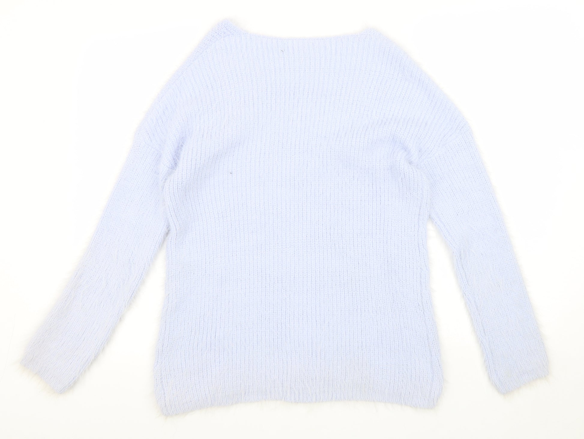 Womens Blue V-Neck Acrylic Pullover Jumper Size 12