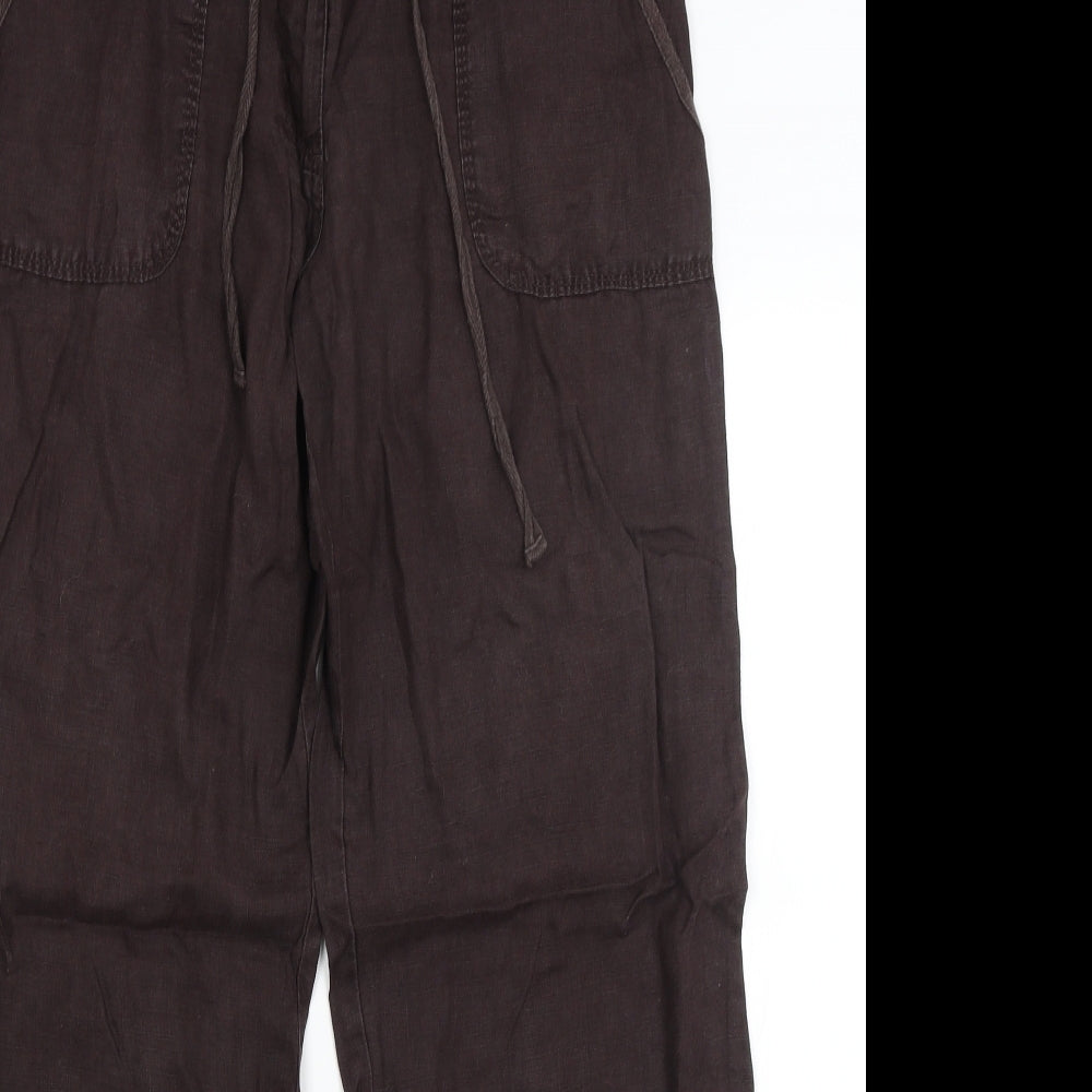 ZARA Women Brown High Rise Pleated Linen Blend Tapered Trousers Size 12