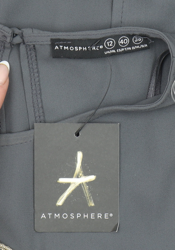 Elevate your everyday wardrobe with this chic and versatile women's grey sleeveless blouse from Atmosphere. Crafted from lightweight chiffon-style polyester, this top offers a soft, breathable finish that ensures comfort throughout the day while maintaining an elegant drape. Designed in a flattering tunic silhouette, it flows beautifully over the body, providing a graceful yet relaxed fit that’s ideal for both casual and refined outfits. The blouse features a simple crew neckline with a delicate button fastening at the back, adding a subtle touch of refinement. Its solid grey colour makes it wonderfully easy to pair with a wide variety of outfits, from tailored trousers and blazers for workwear settings, to jeans and statement jewellery for a stylish off-duty look. The sleeveless design keeps it perfect for warmer seasons like summer and spring, while also making it an ideal layering piece under cardigans or jackets. This top demonstrates versatility and practicality in equal measure, and its modern minimalist aesthetic makes it a wardrobe essential for any style-conscious woman. Given its timeless neutral hue, it transitions seamlessly from daytime office wear to evening social gatherings. The lightweight woven polyester material ensures easy care and wearability, maintaining shape and smoothness even with regular machine washing. Suited for casual occasions, travel, or smart-casual events, this blouse encapsulates effortless elegance for all-day comfort and confident styling. This piece is brand new with the original tag still attached, guaranteeing you’ll receive it in excellent, pristine condition. Perfect for enhancing a capsule wardrobe, this sleeveless Atmosphere blouse delivers style, simplicity, and everyday wearability in one timeless design.