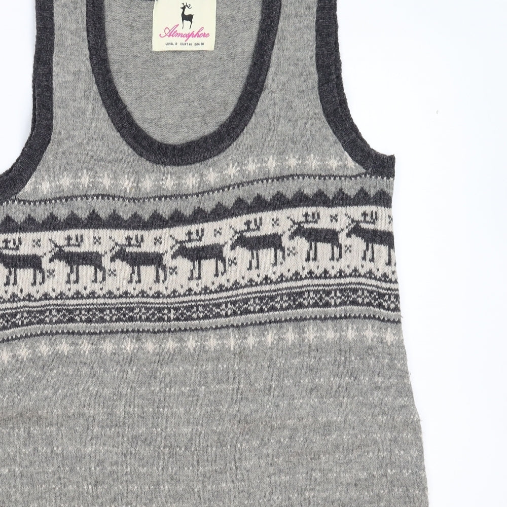 Womens Grey Geometric Knit Jumper Dress Size 12