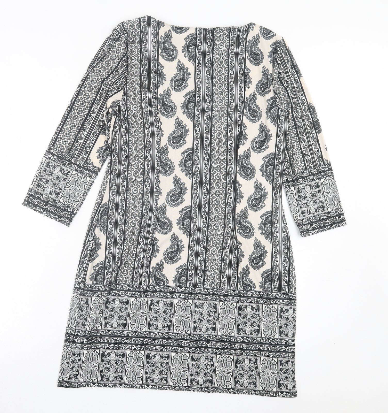 Womens Grey Geometric Polyester A-Line Size 14 Crew Neck Pullover