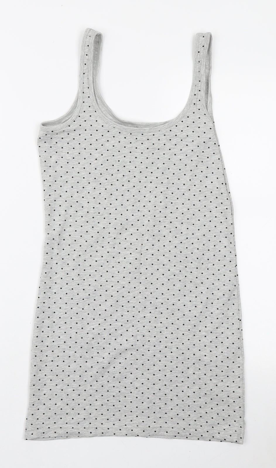 Womens Grey Polka Dot Polyester Basic Tank Size 12 Scoop Neck - Longline Vest