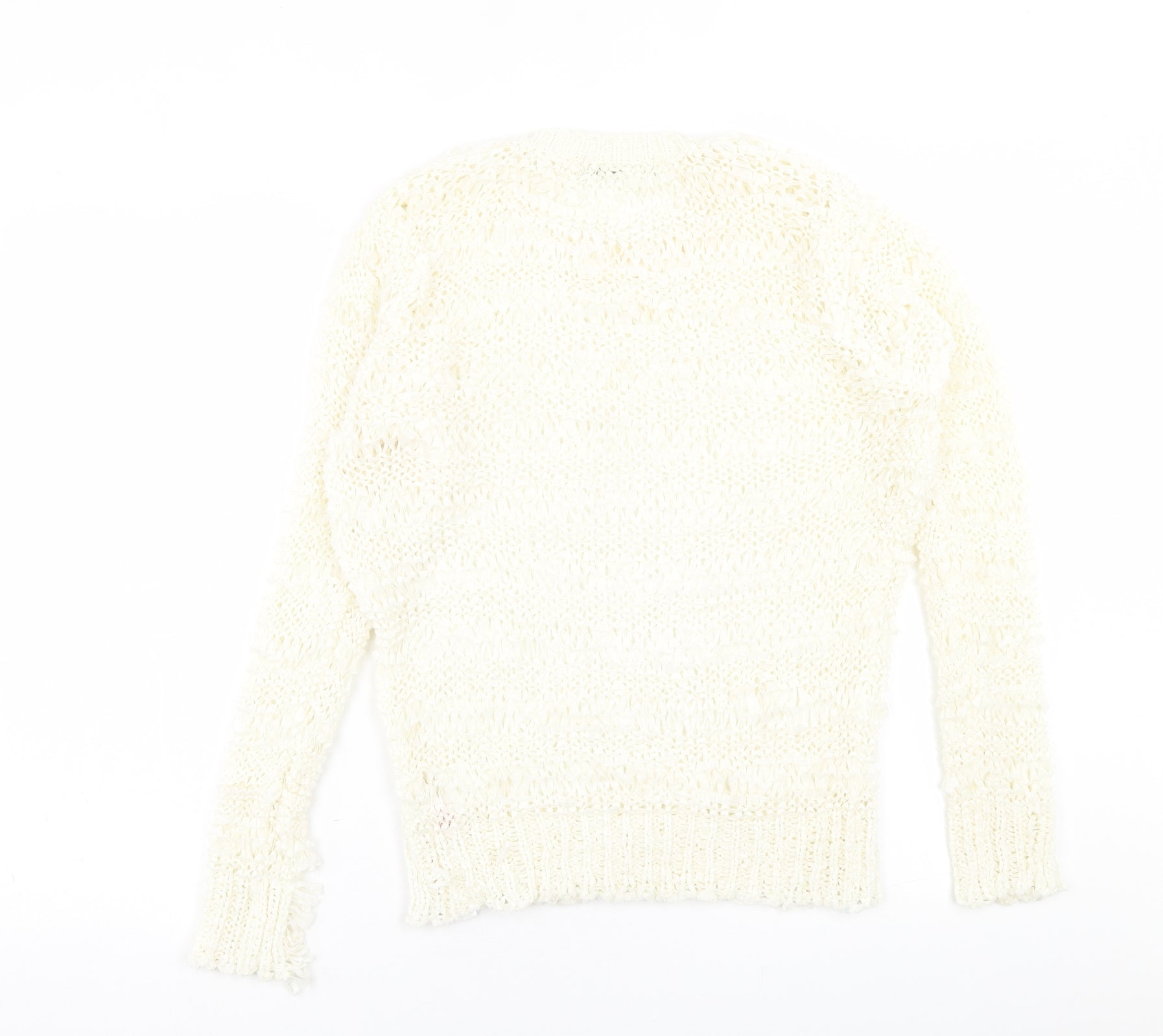 Womens Ivory Crew Neck Acrylic Pullover Jumper Size 14